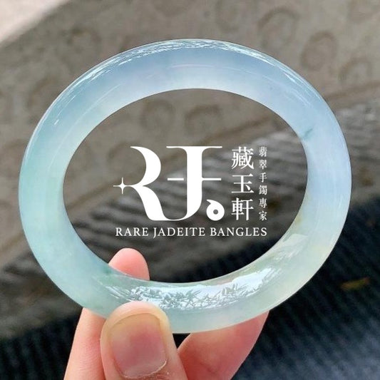 高冰飄藍花平安鐲