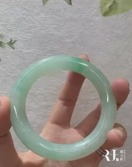 冰種果綠飄陽綠圓條手鐲,圈口為57.3,適合偏大圈口,並且條形極好,保值福鐲款式,飄花色澤翠綠欲滴,冰甜果綠,種老起螢,整體膠潤細膩。