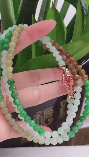 三彩圓珠項鍊,色彩鮮艷亮麗,顆顆水潤細膩飽滿。
