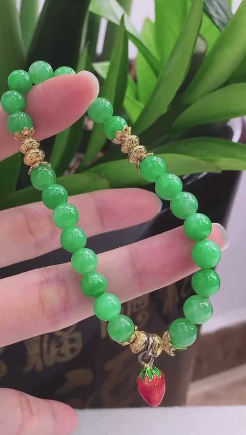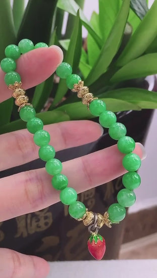 溫柔細膩的滿綠手珠,種老水長,珠圓玉潤,色澤青翠嬌豔!