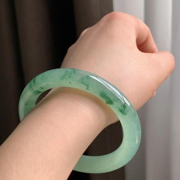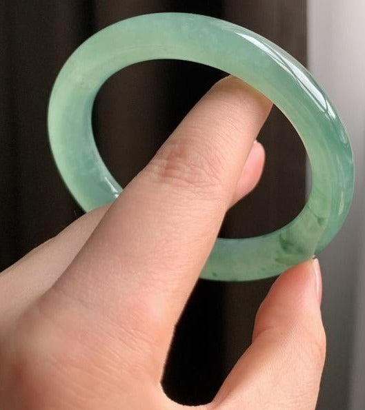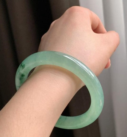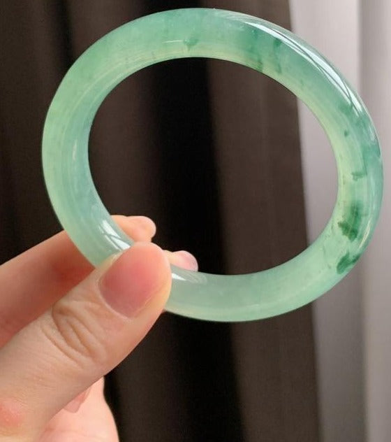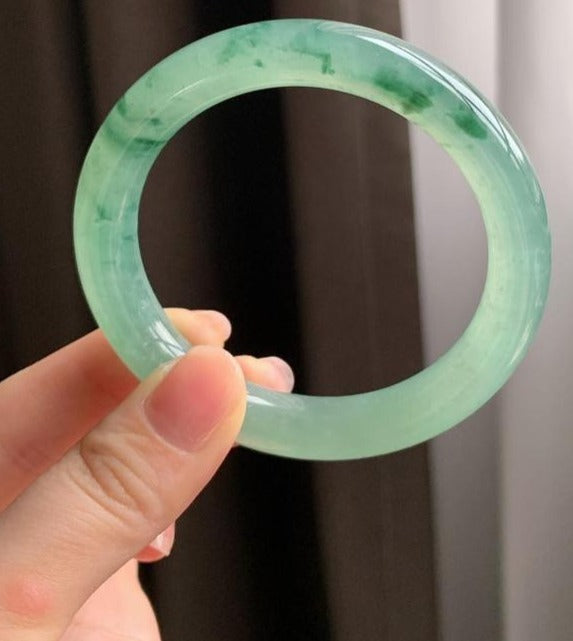 高冰種飄陽綠花,色溶於底,顏色漂亮。