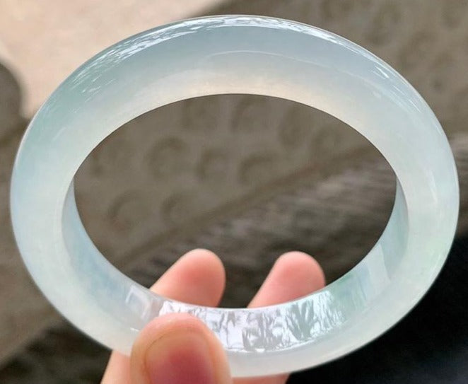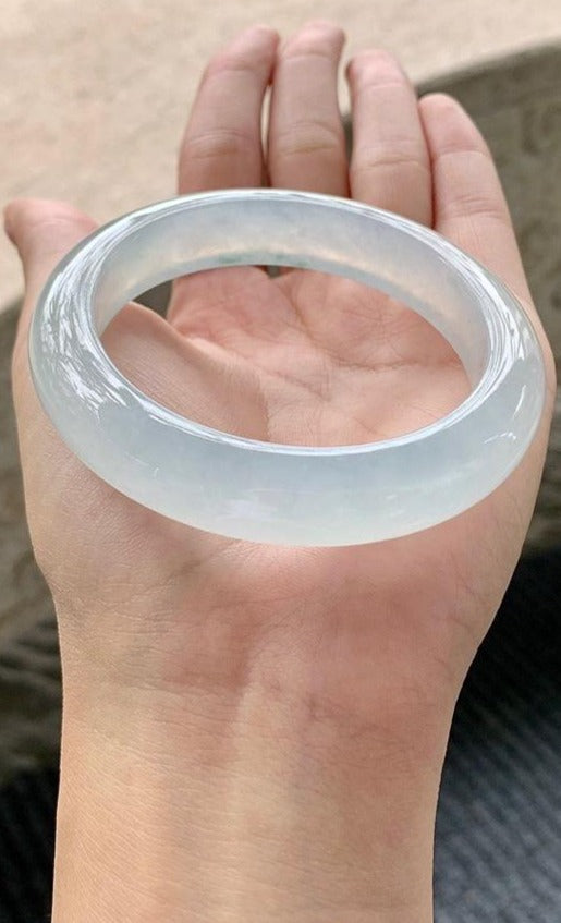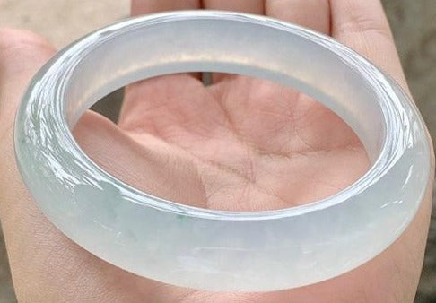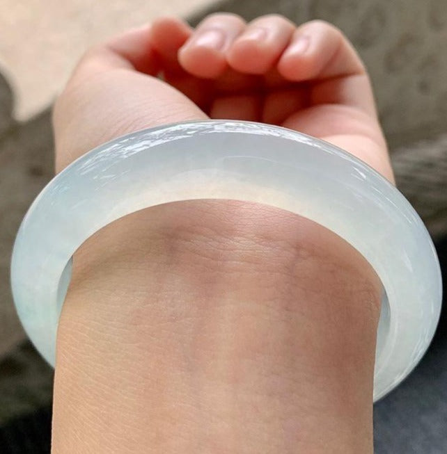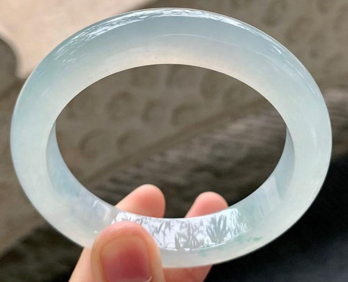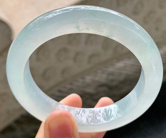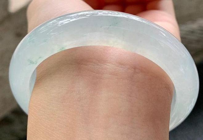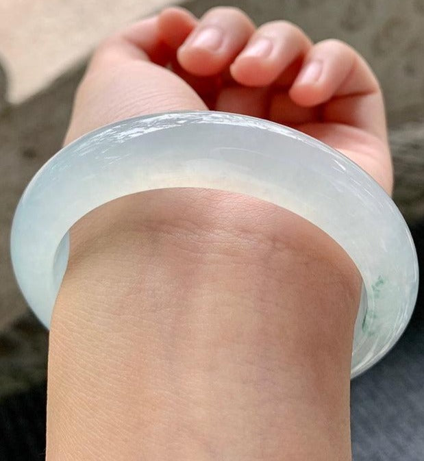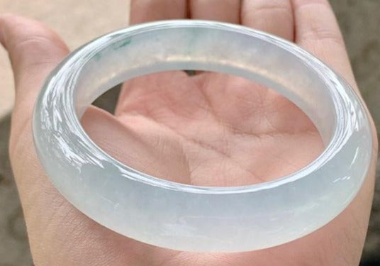 高冰種晴水底飄絲絲綠花,玉質種老起螢起光,溫潤細膩,膠感十足。