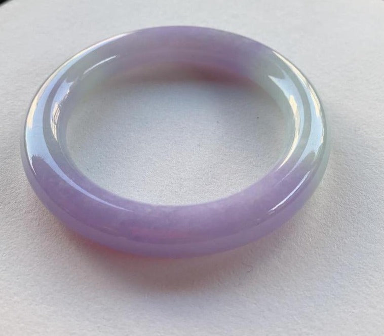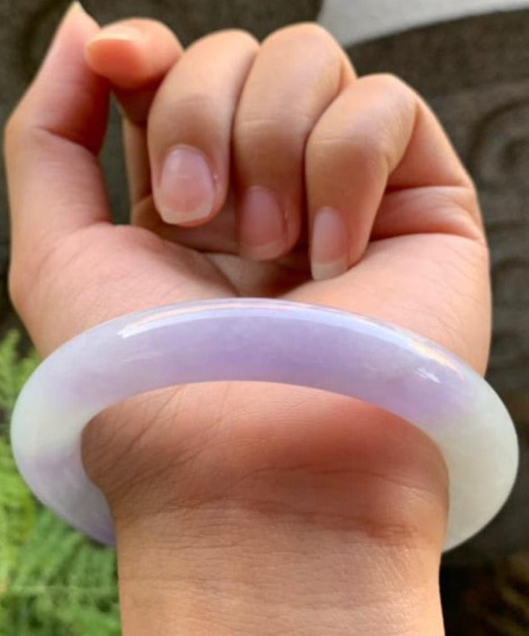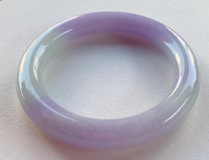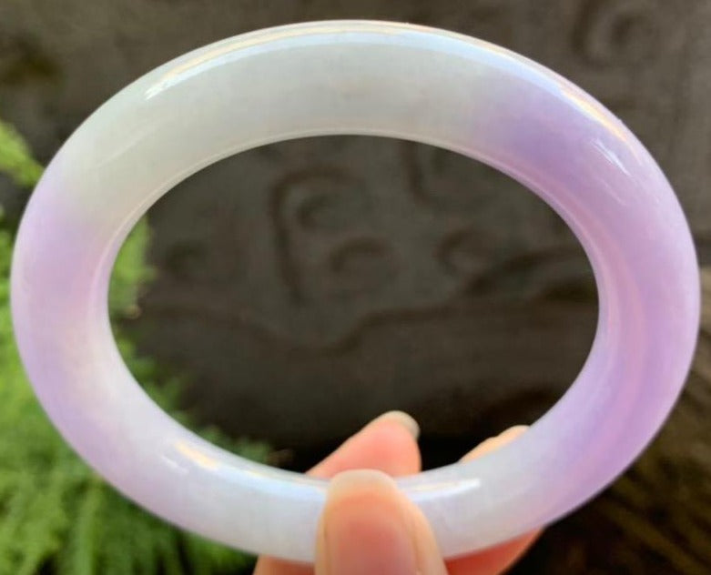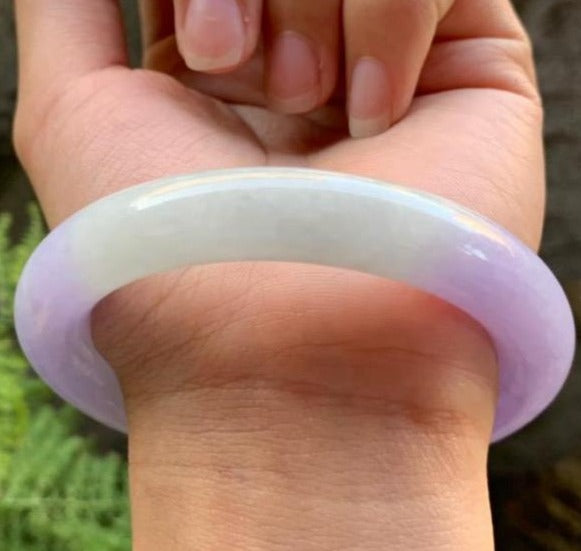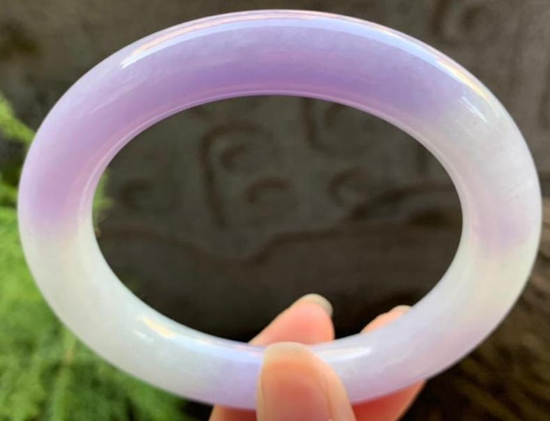 極好的糯冰種,顏色漂亮,豔麗紫與奶白底,見光不失色。