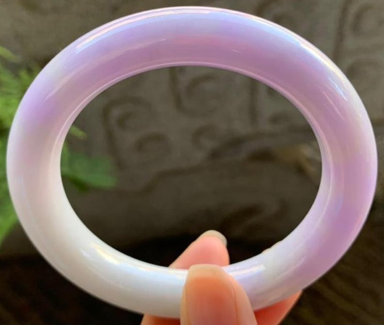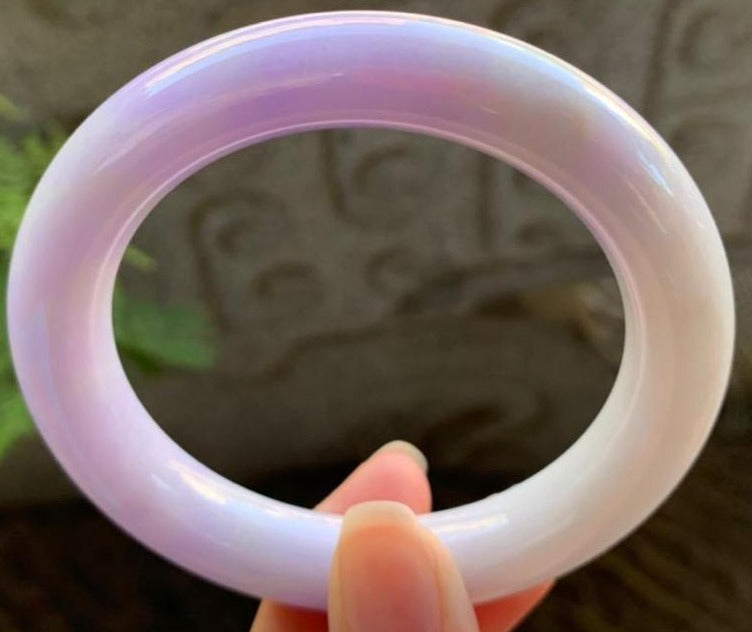 極好的糯冰種,顏色漂亮,豔麗紫與奶白底,色溶於底,見光不失色。