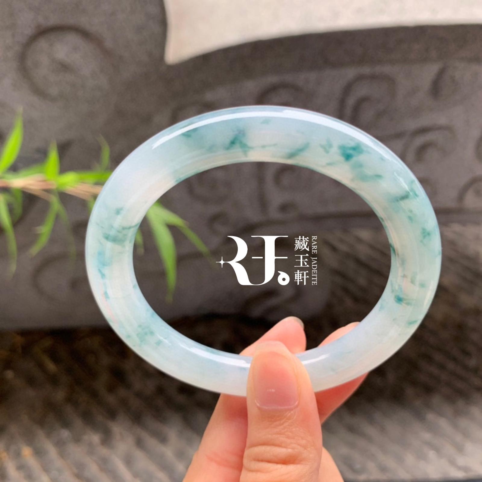 冰種飄藍花福鐲,藍綠色飄花色澤鮮豔漂亮,讓人怦然心動!