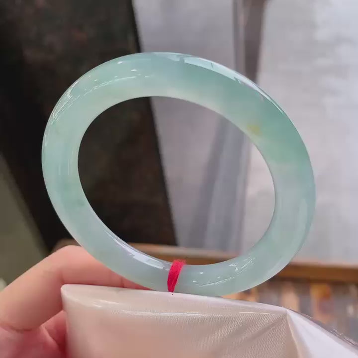淡雅的晴底圓條翡翠手鐲,看起來很舒服,很清新甜美,清盈水潤且耐看!