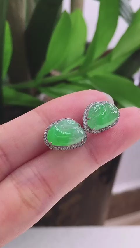 【滿綠天鵝翡翠耳釘】