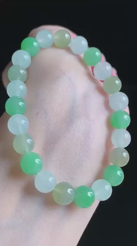 冰種三彩,圓珠手串。