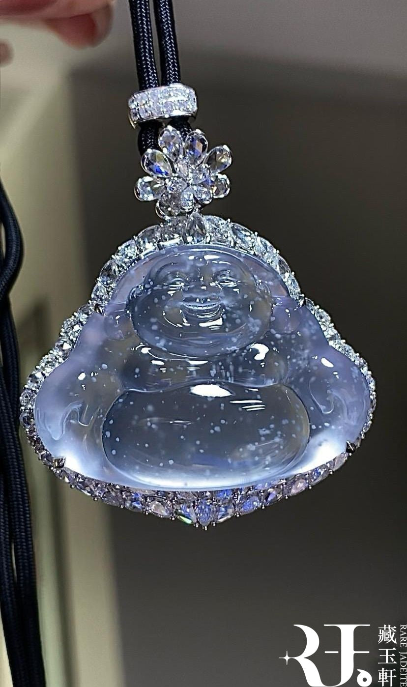 蘊藏著一場綿密雪景的玻璃種木那冰玻雪花棉佛公,飄得格外有立體感,彷彿在陽光的照耀下散發著璀璨的光芒。