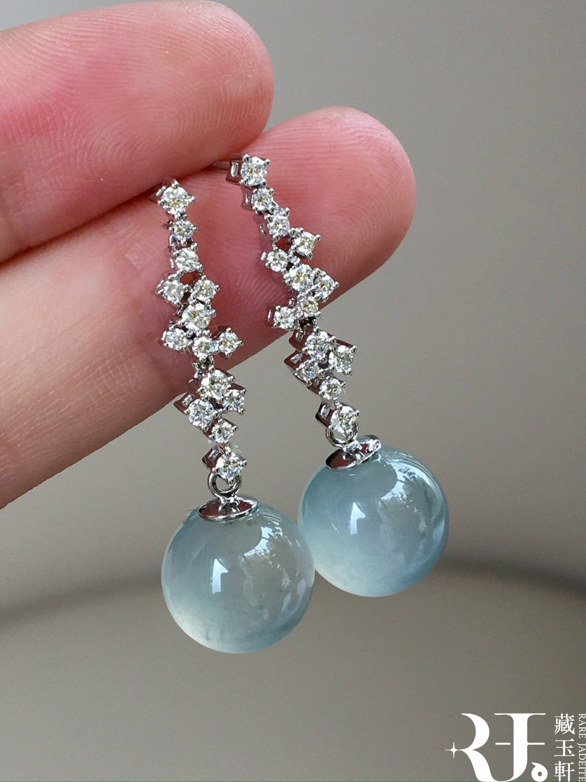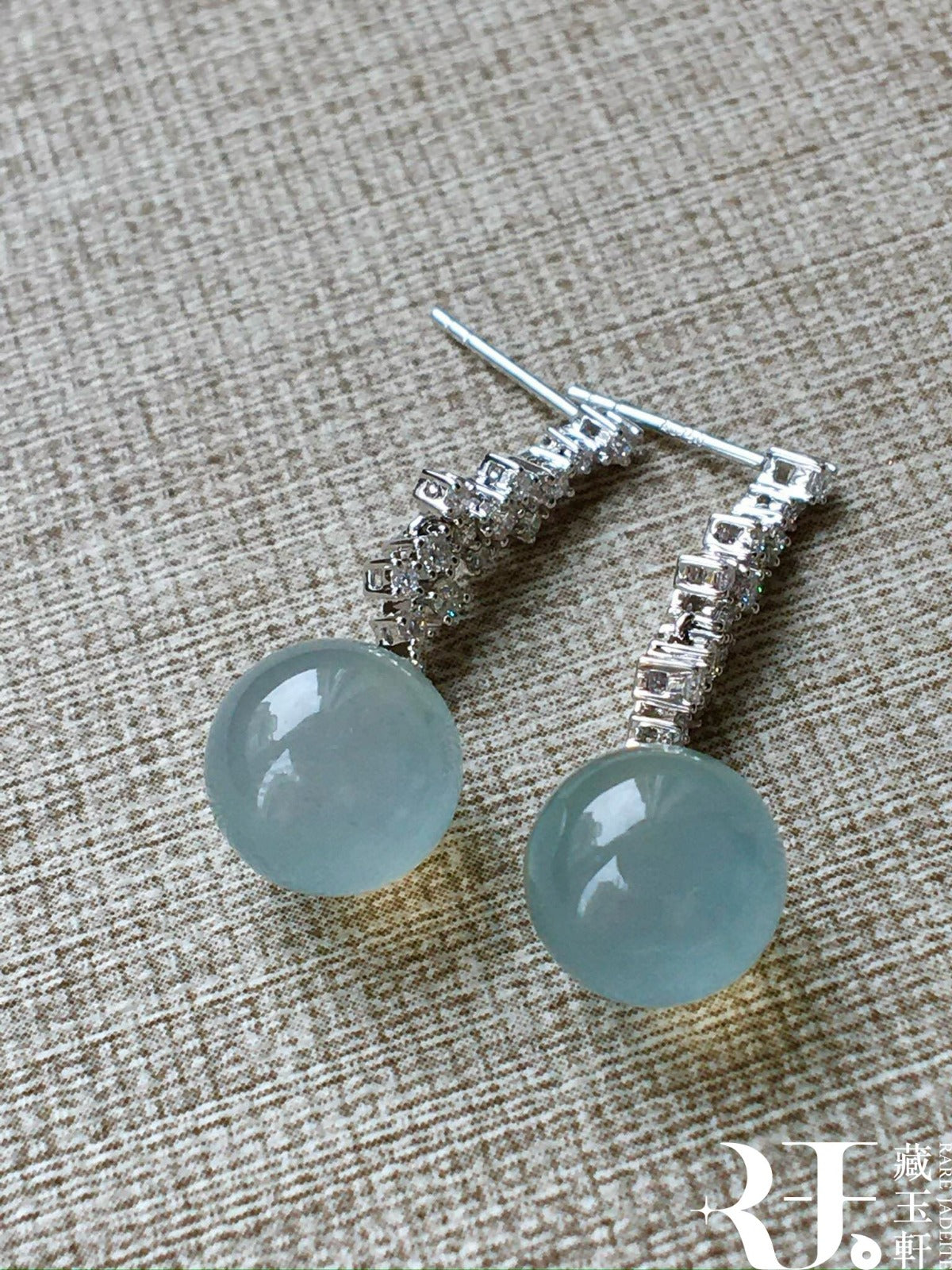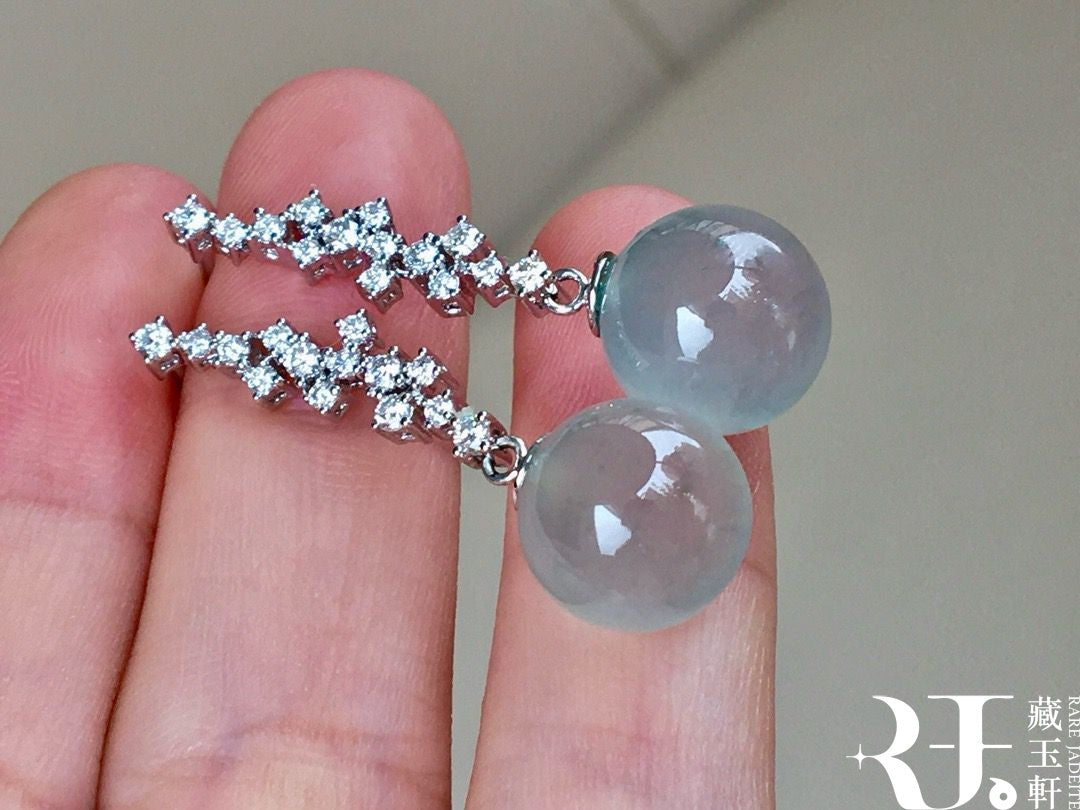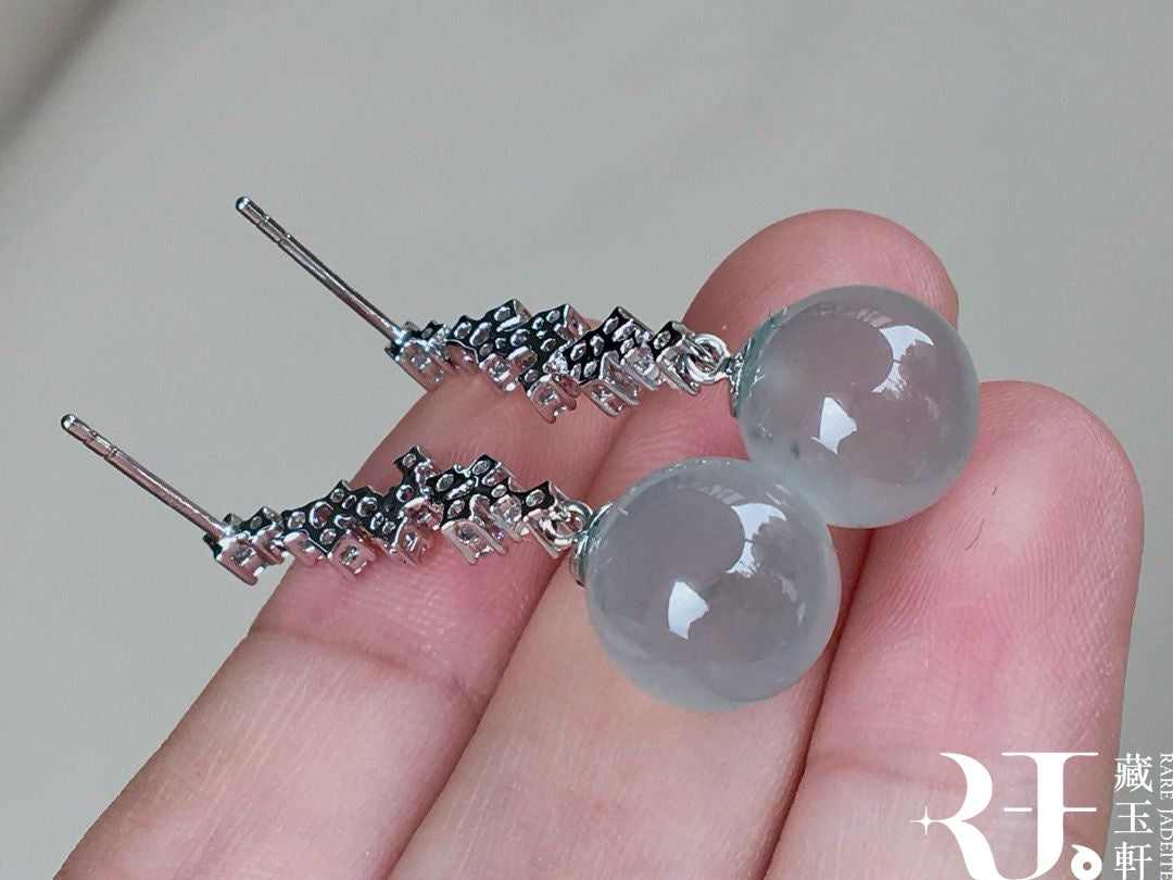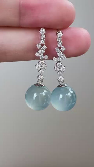 晴水藍珠子翡翠耳墜,清新而生機勃勃,凝練成珠,圓潤飽滿,彷彿將深邃寧靜的湖水封存在這方天地,靜謐中透著高貴柔美。