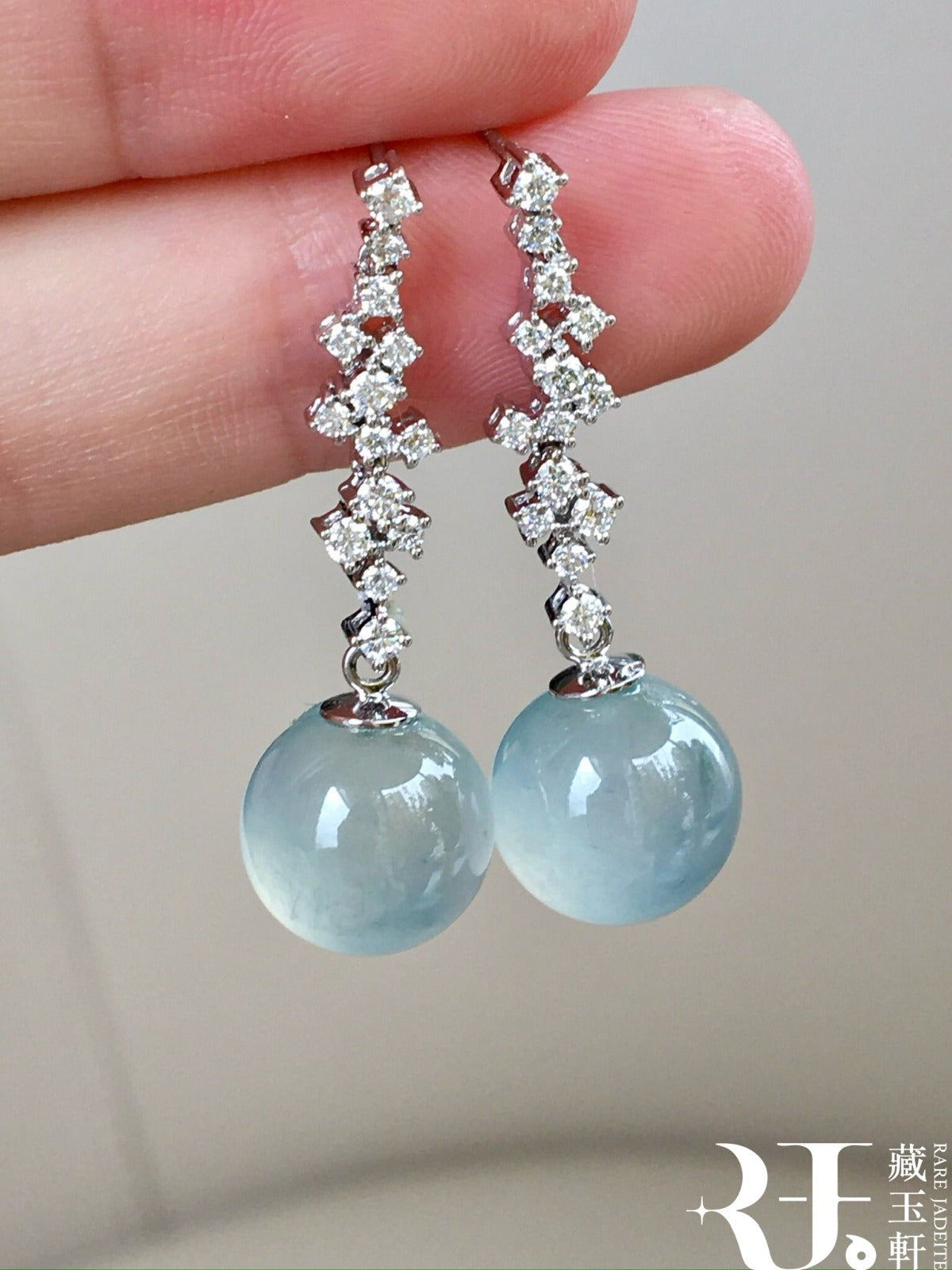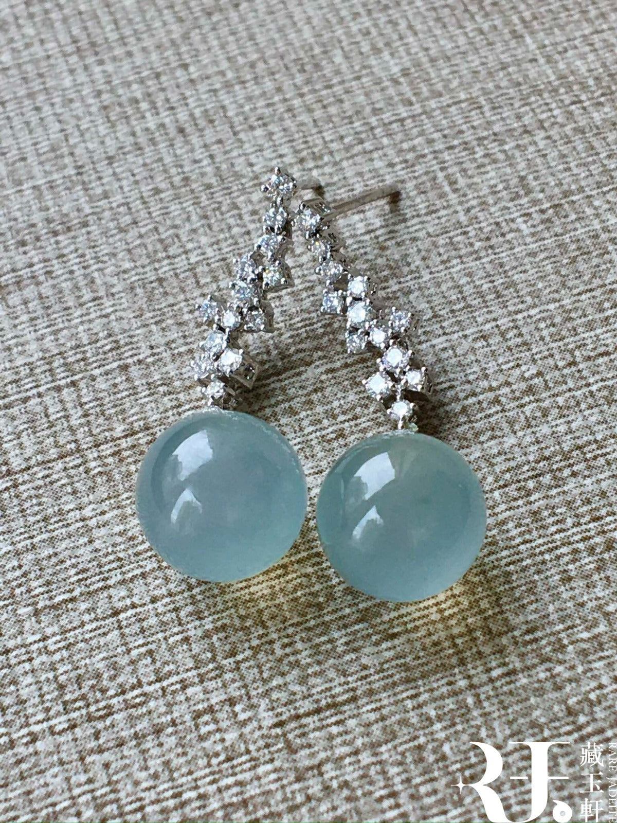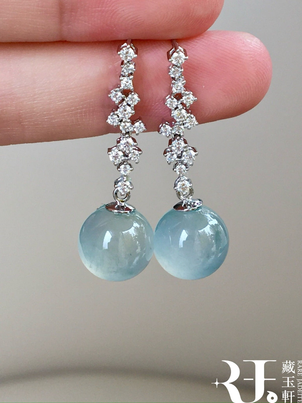 晴水藍珠子翡翠耳墜,清新而生機勃勃,凝練成珠,圓潤飽滿,彷彿將深邃寧靜的湖水封存在這方天地,靜謐中透著高貴柔美。