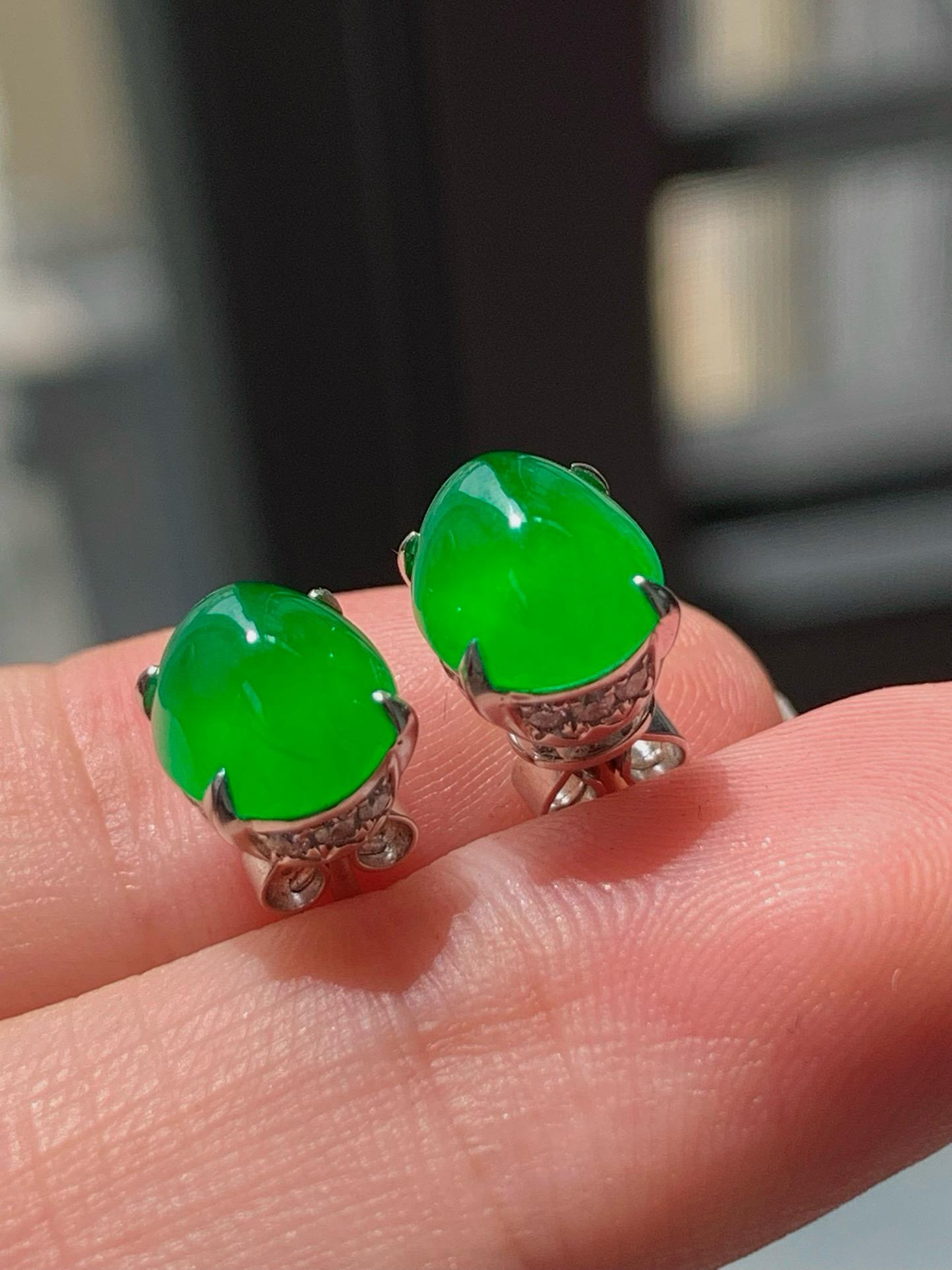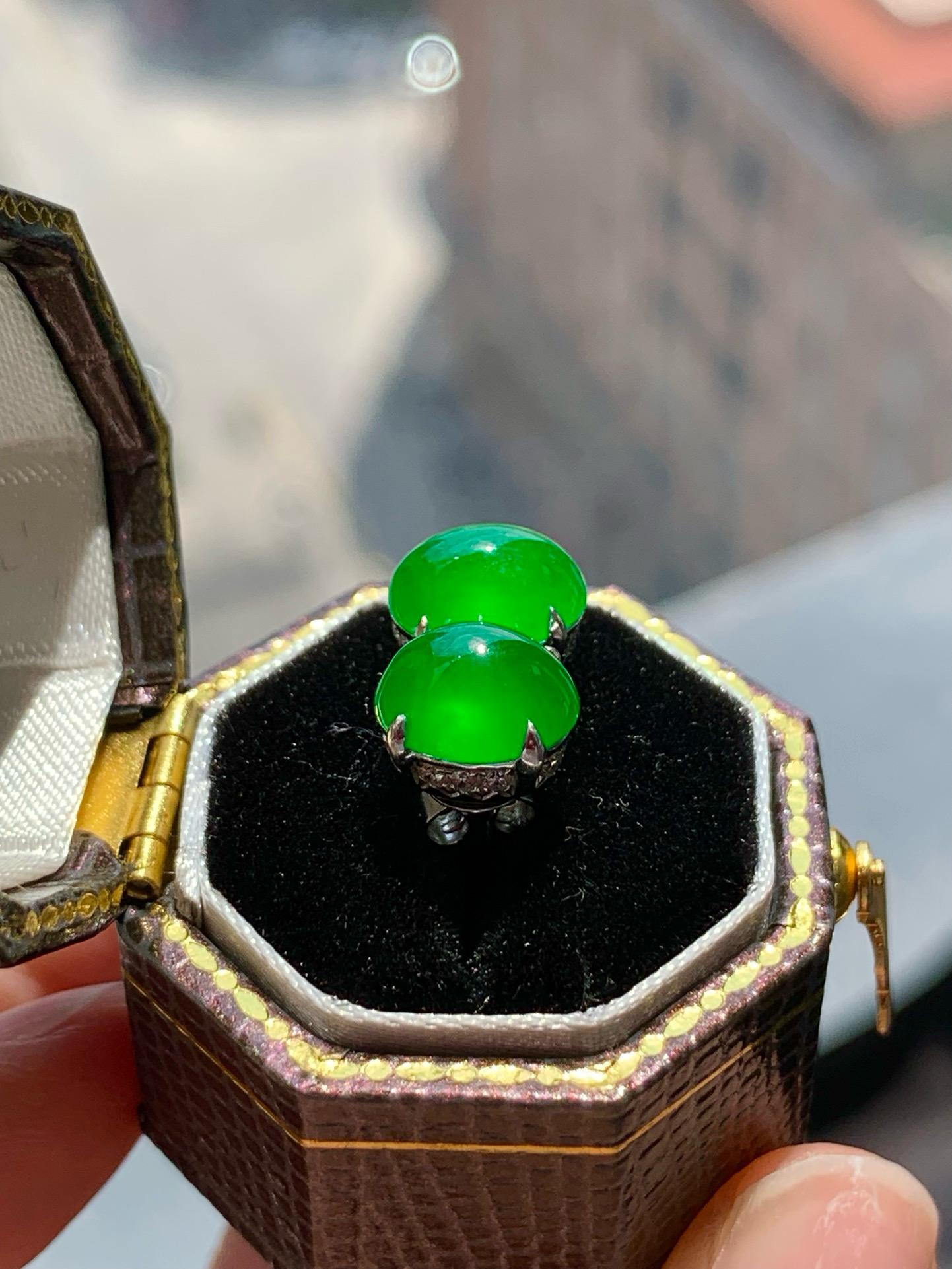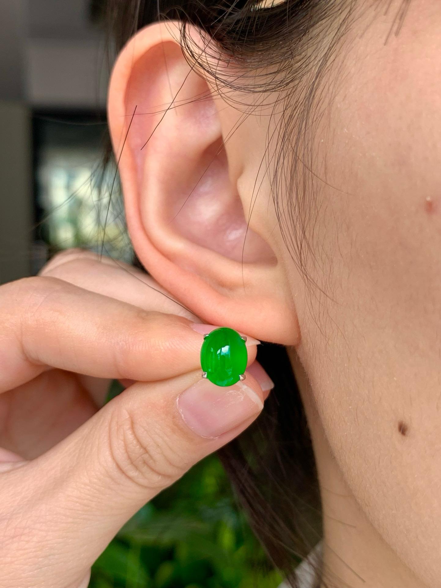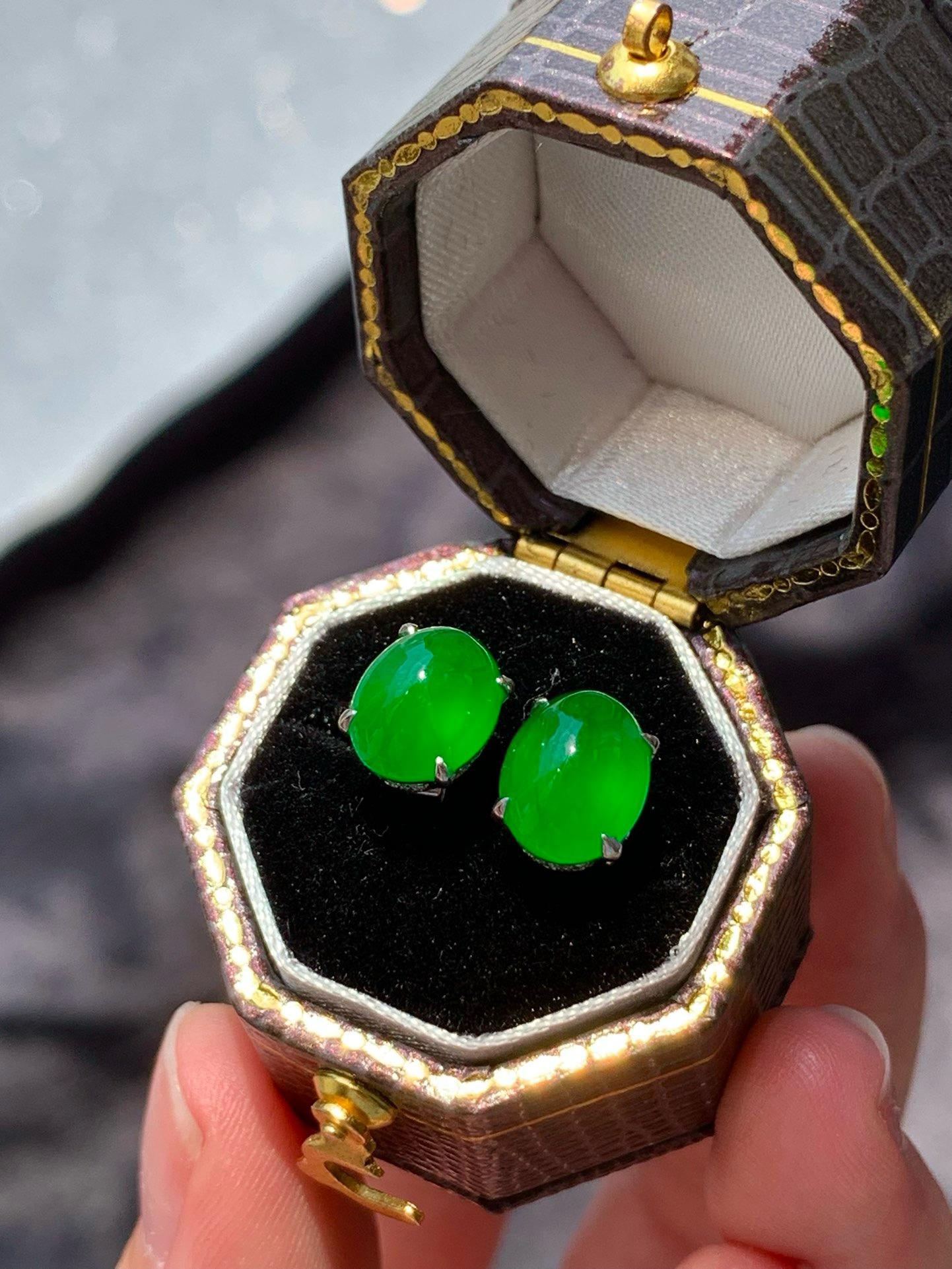 【簡鑲綠蛋翡翠耳釘】