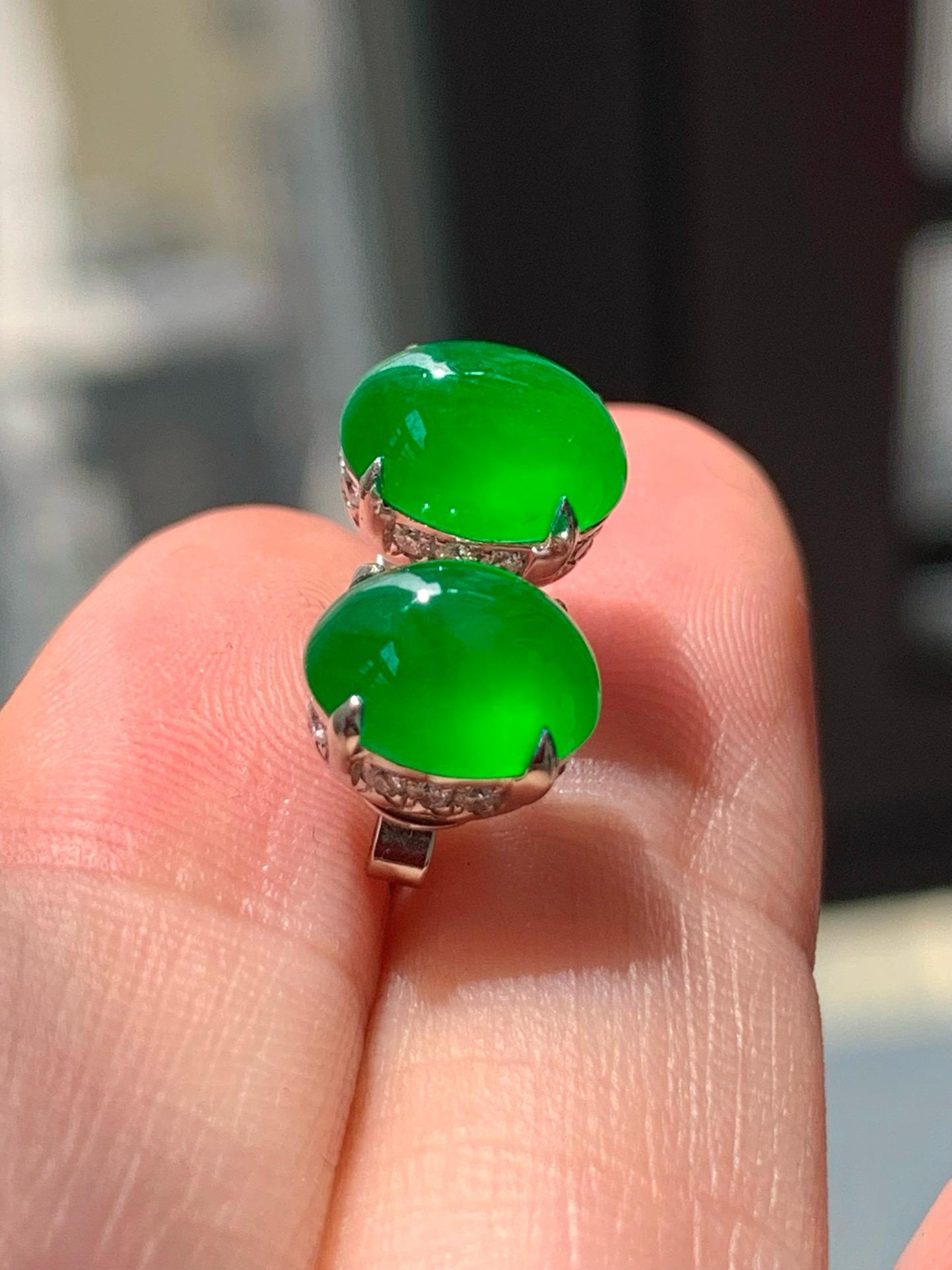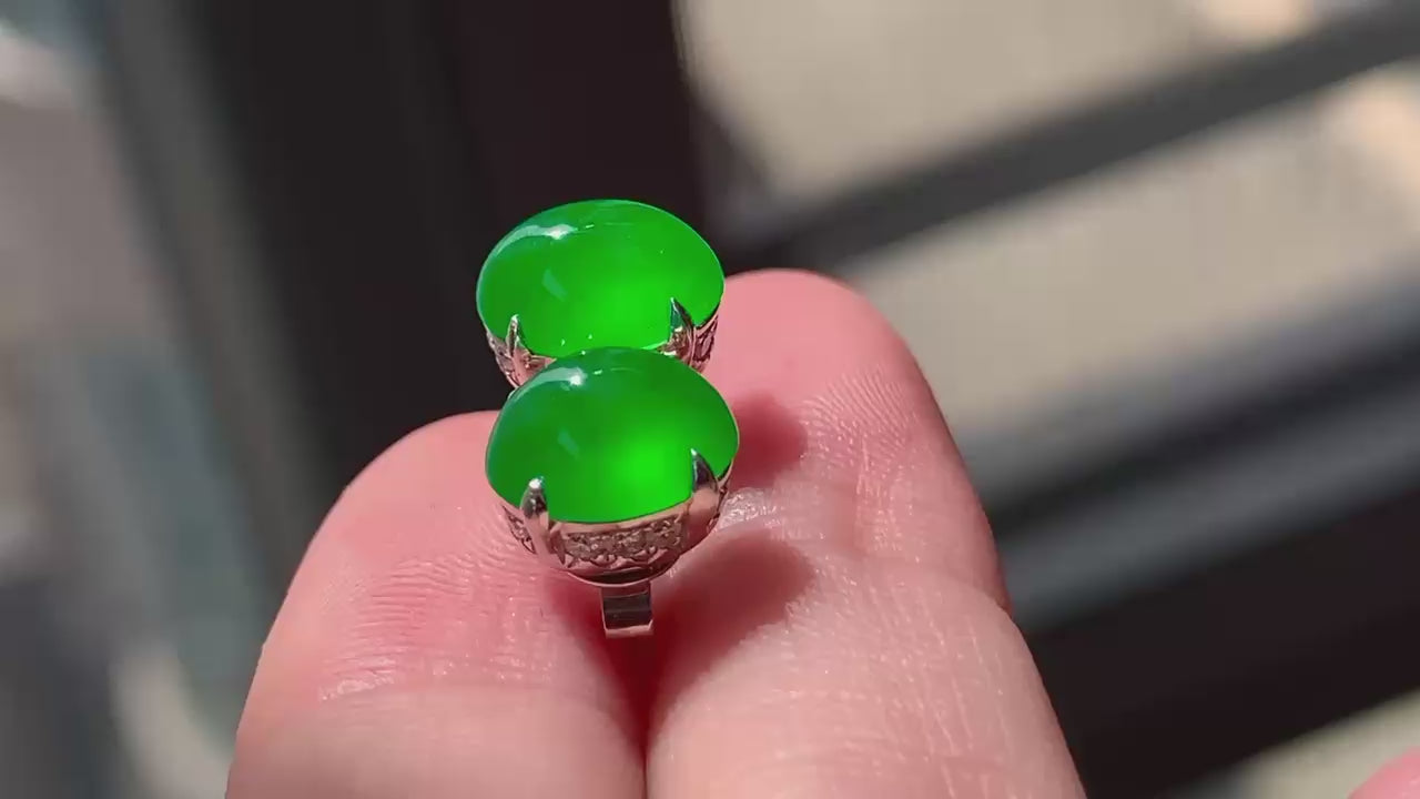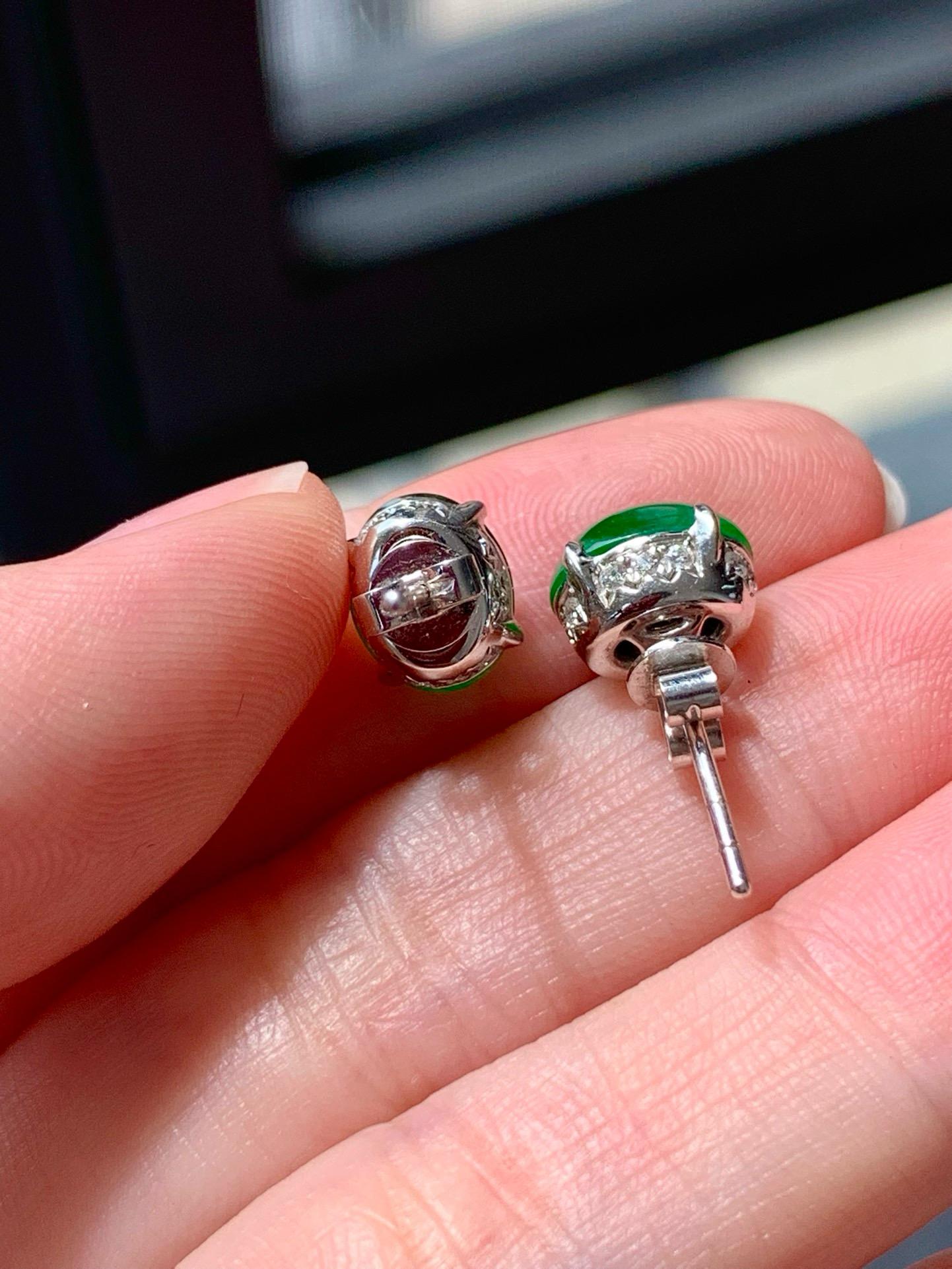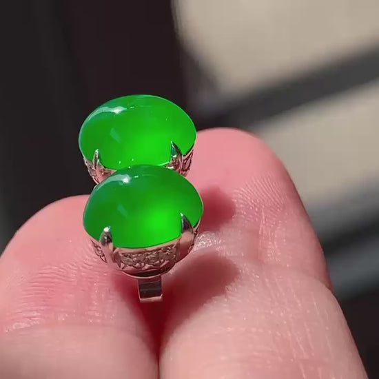 【簡鑲綠蛋翡翠耳釘】