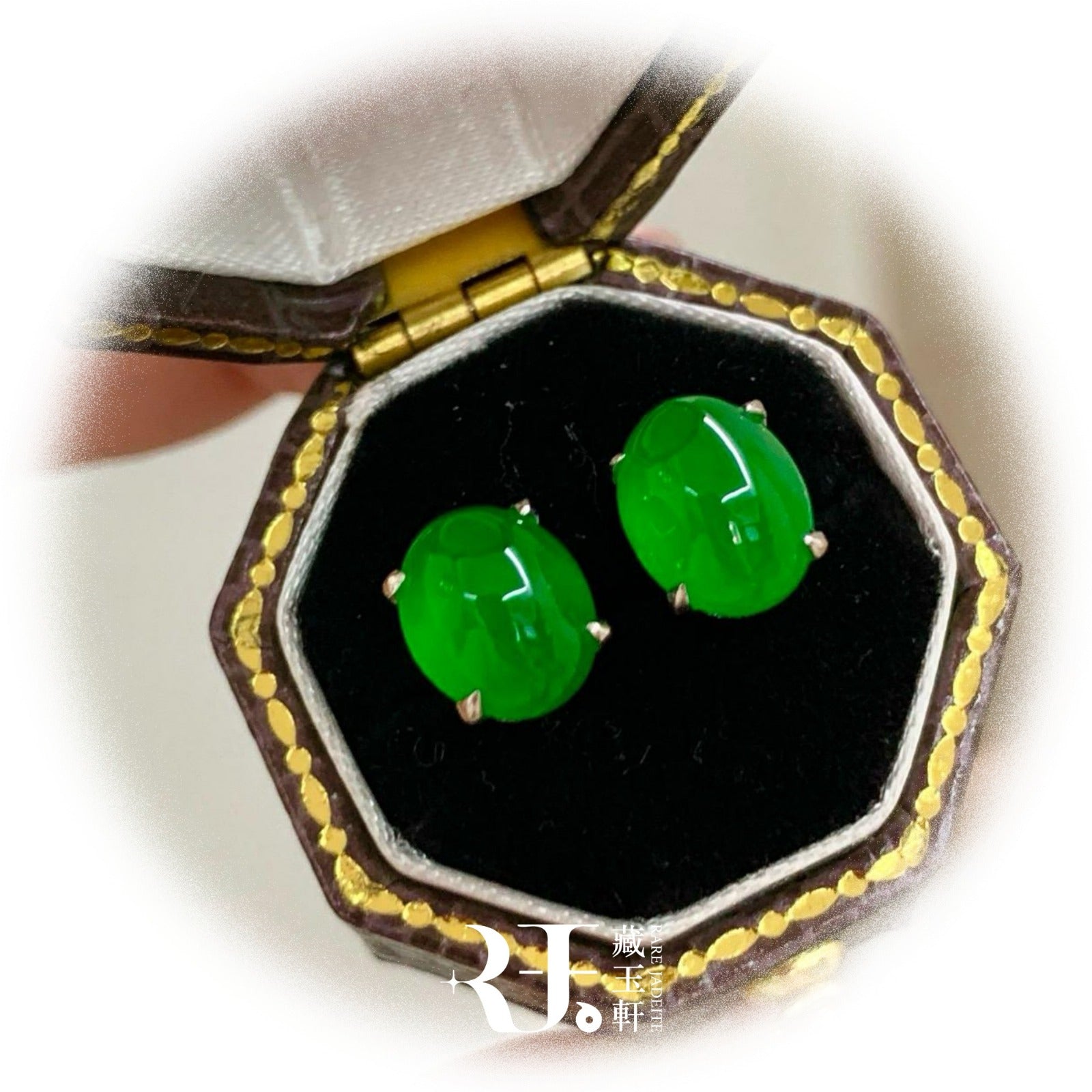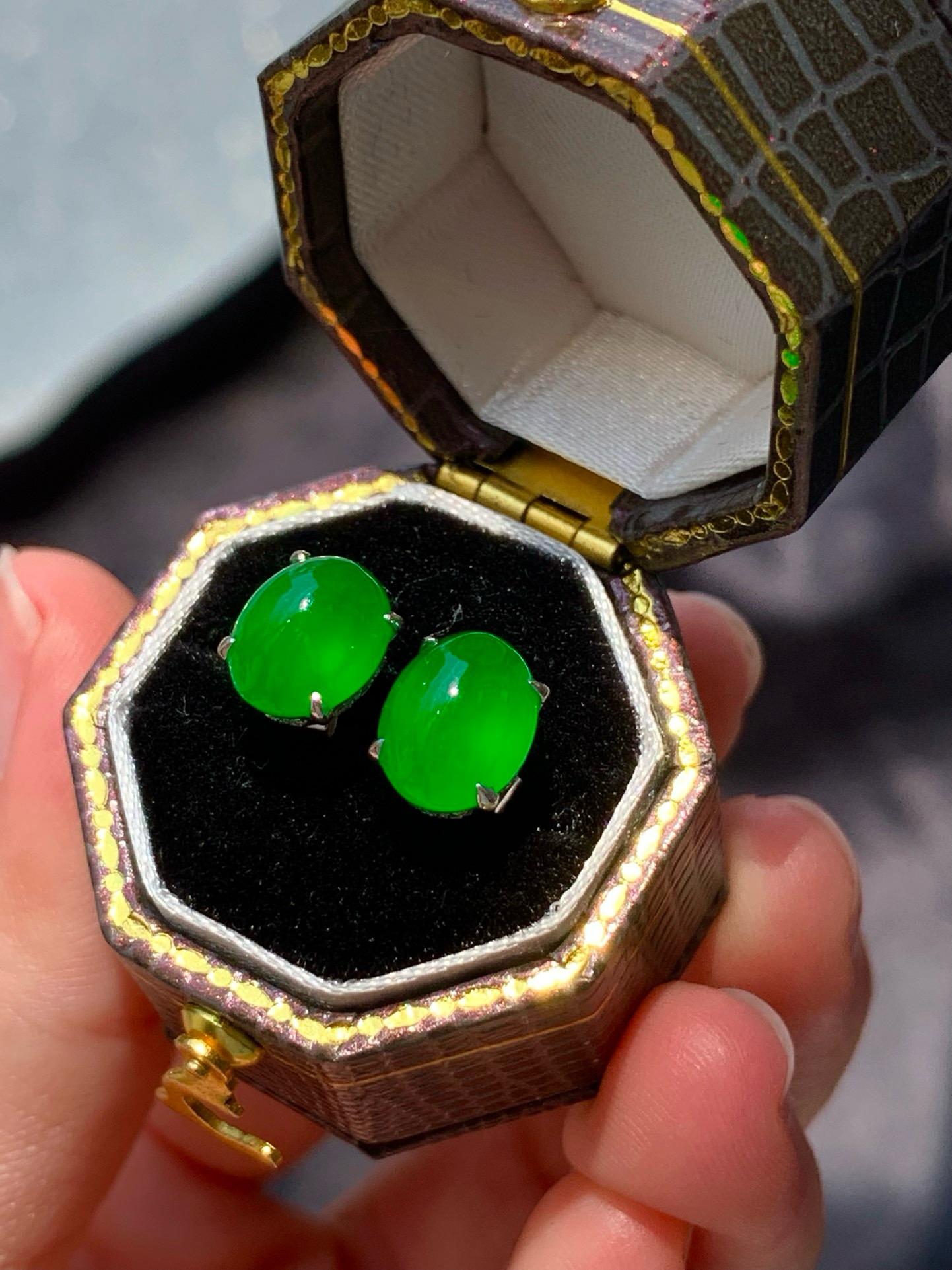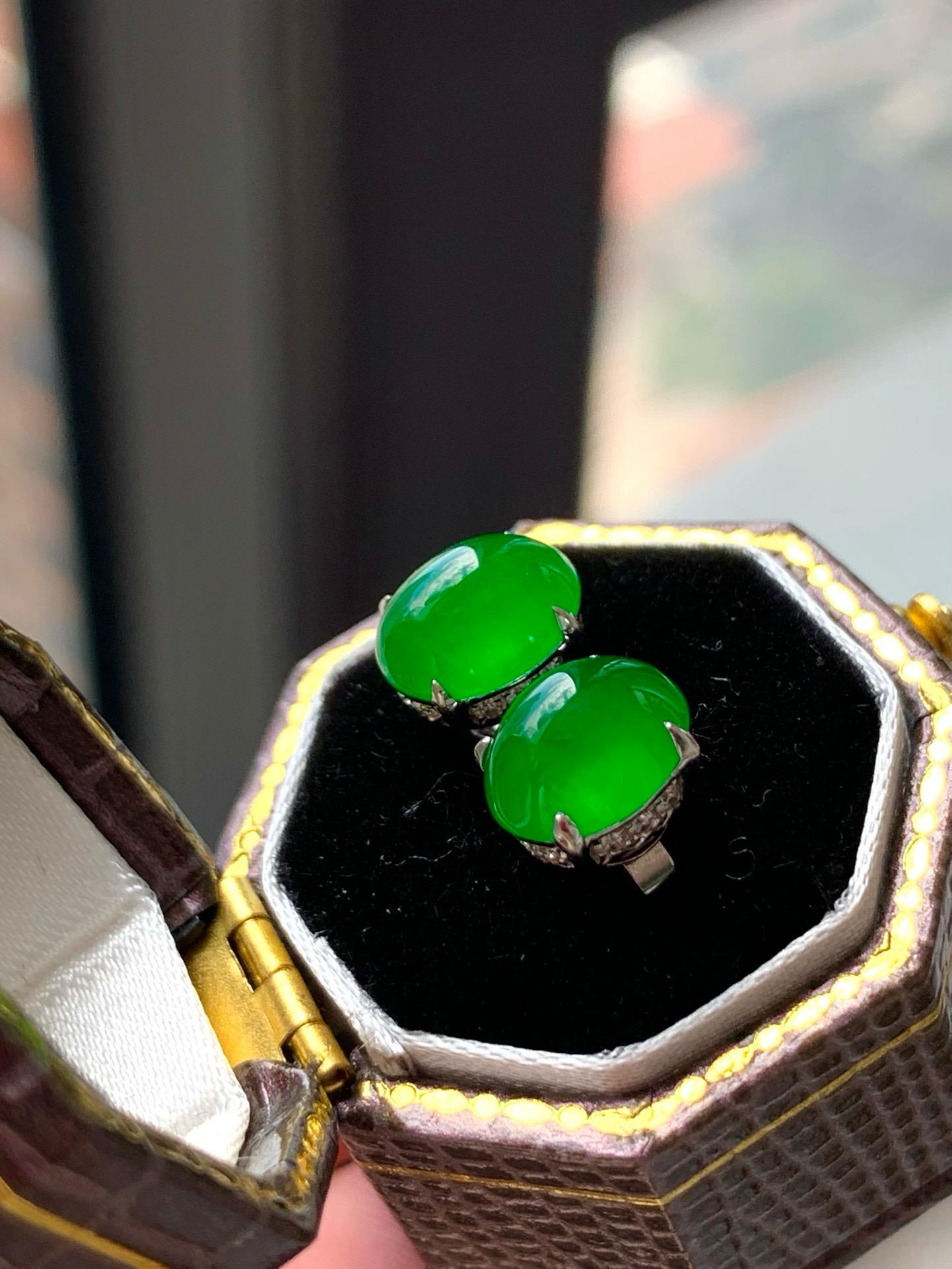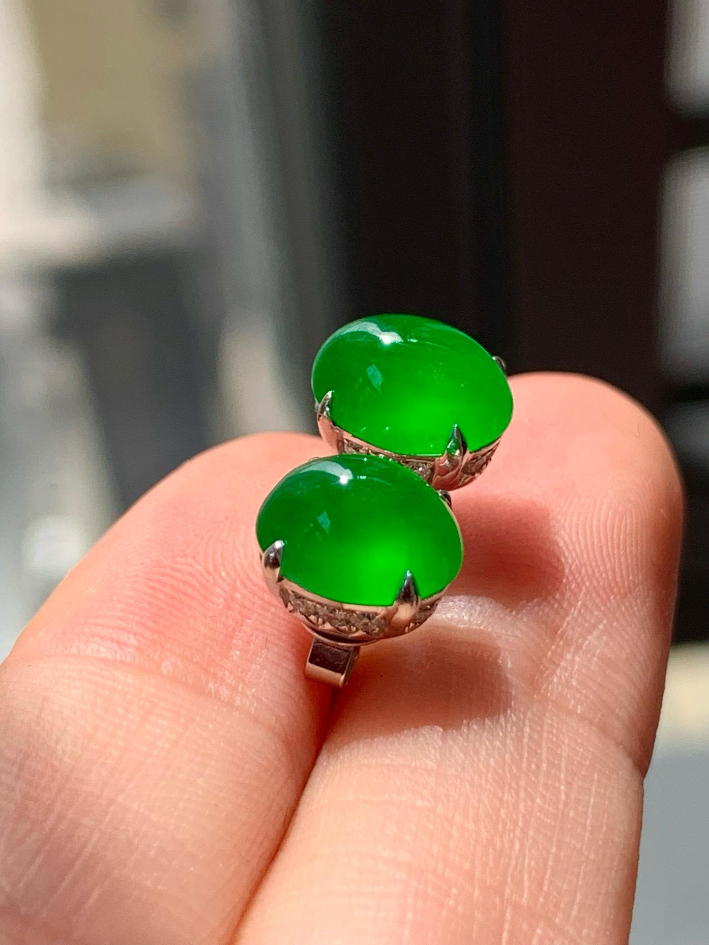 【簡鑲綠蛋翡翠耳釘】