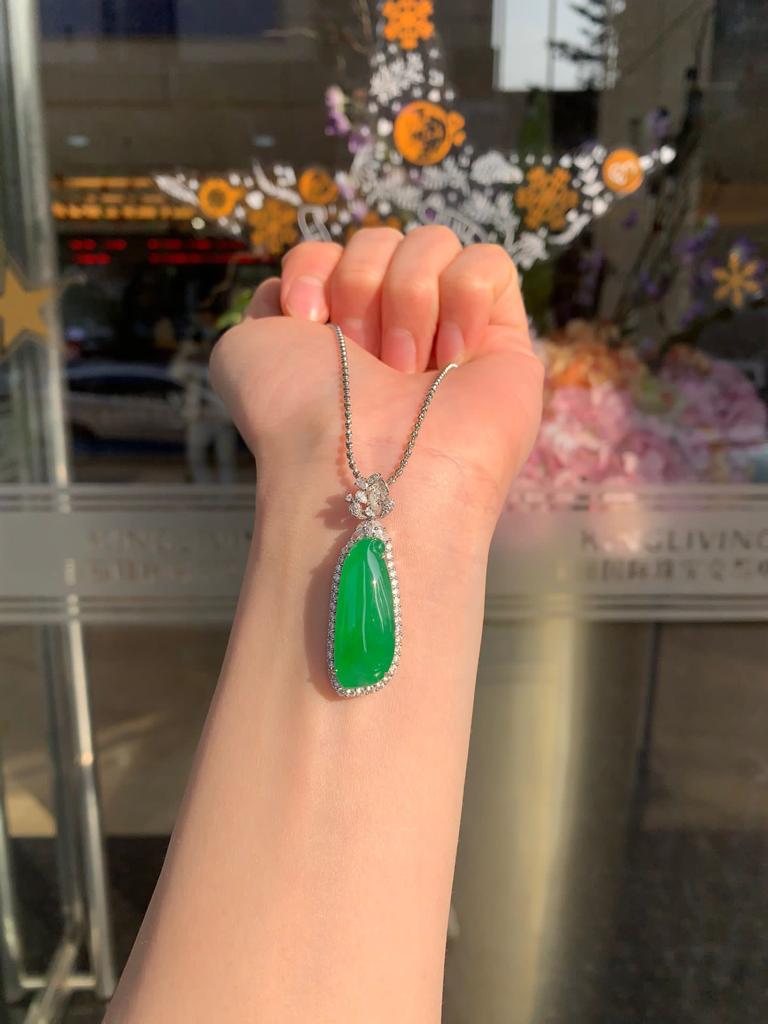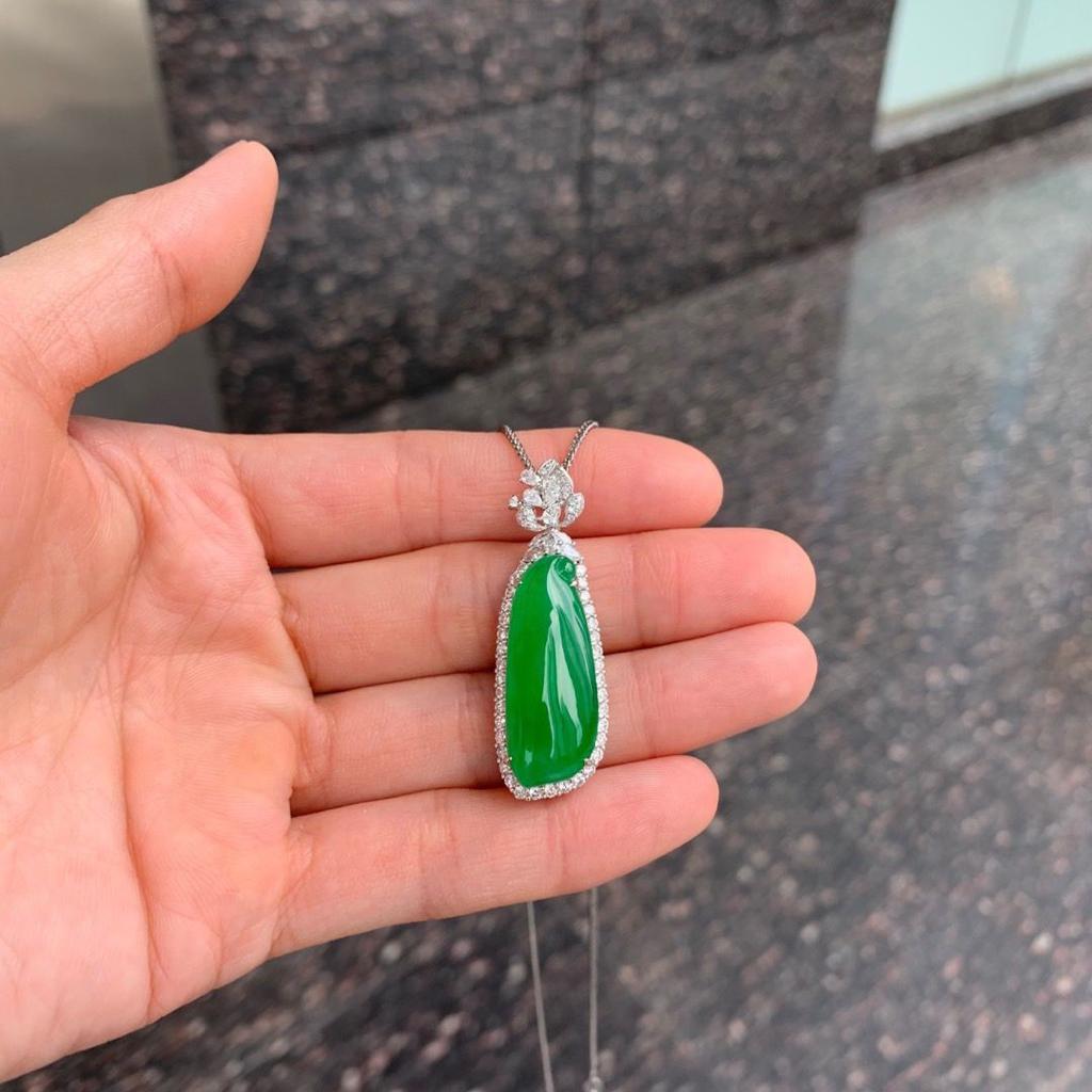 整體盈盈綠意,瓜型修長飽滿,高冰種老起光起螢,佩戴起來起來氣質清雅。