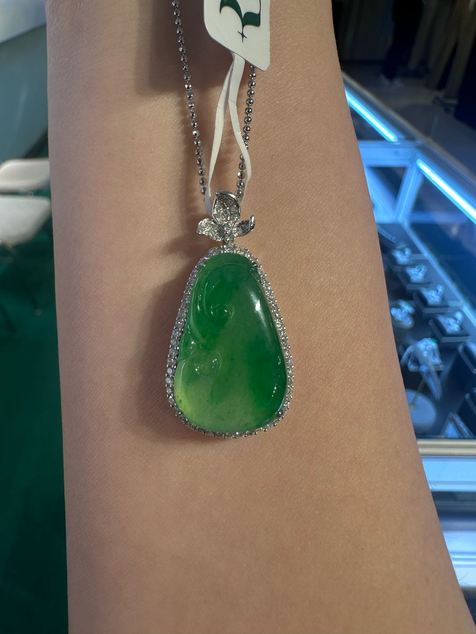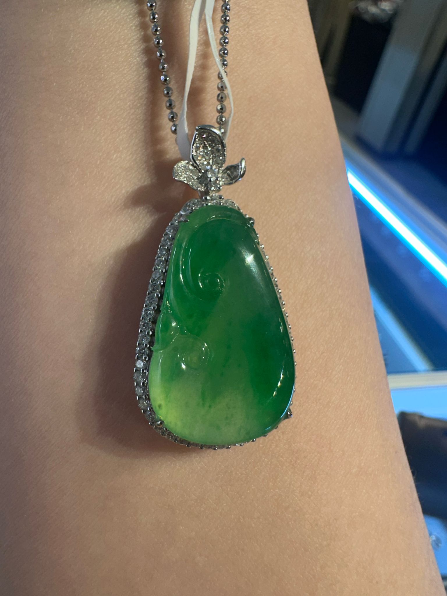 玉質飽滿冰透,細膩膠潤起螢起光,色辣種好青翠嬌豔。