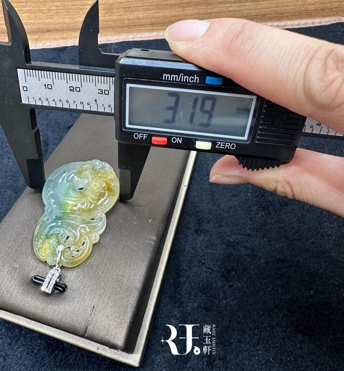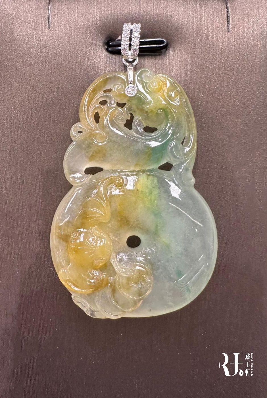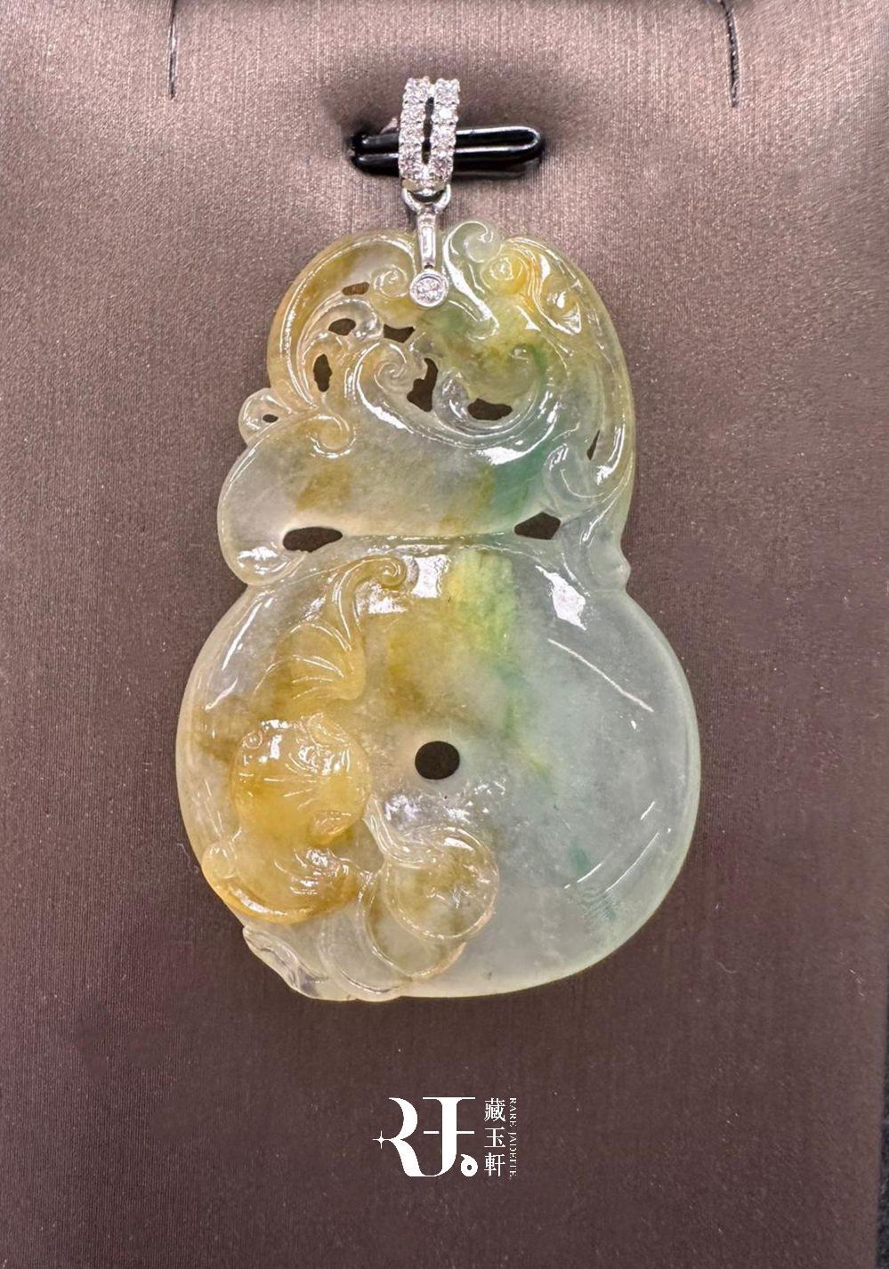藏玉軒【蝠皇錢行祿雲】黃加綠吊墜,料子出自最美黃翡的達馬坎場口,這