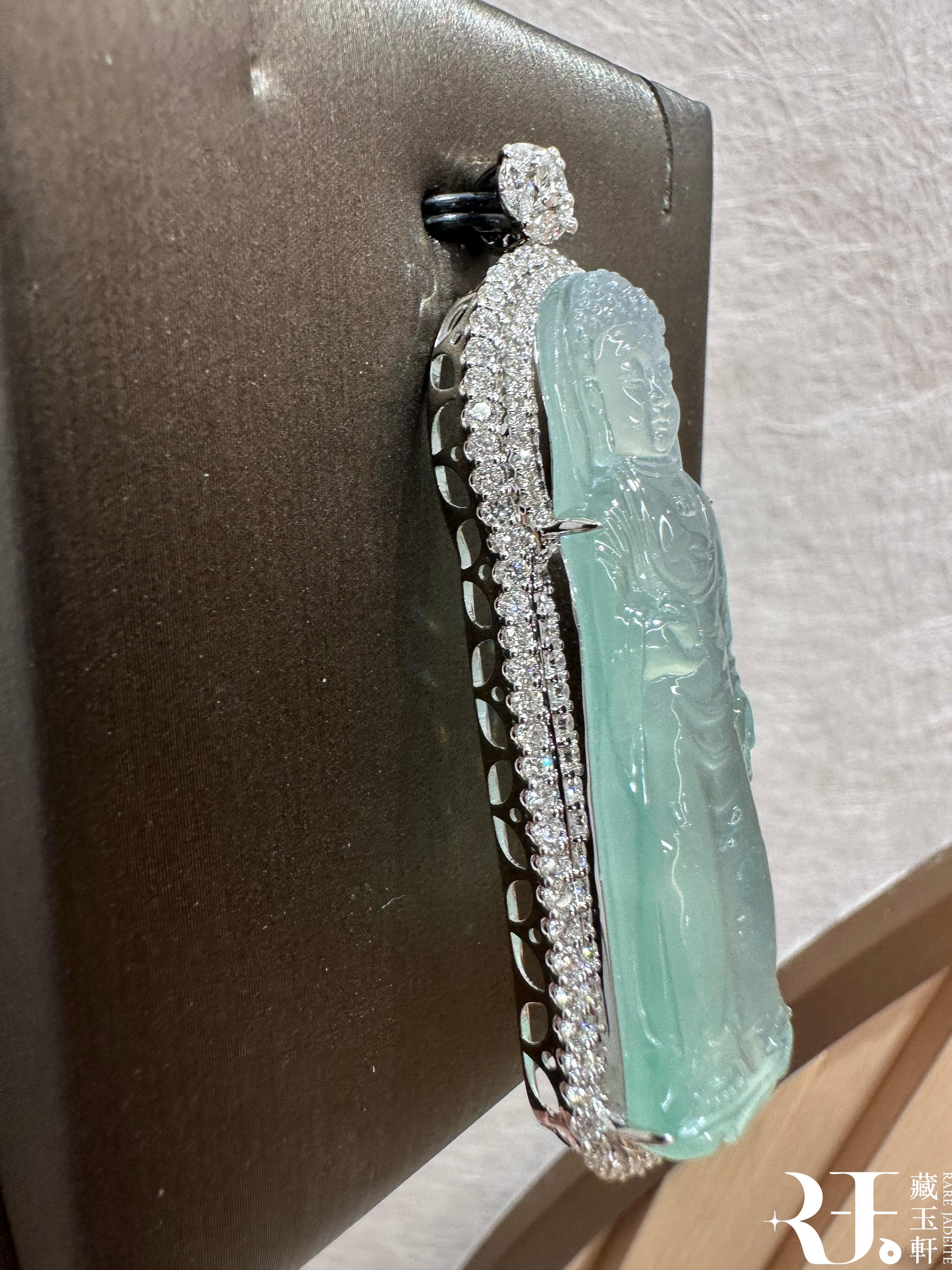 色澤漂亮清透水亮,玉質種老細膩起螢起光,整體水潤飽滿,膠感十足。