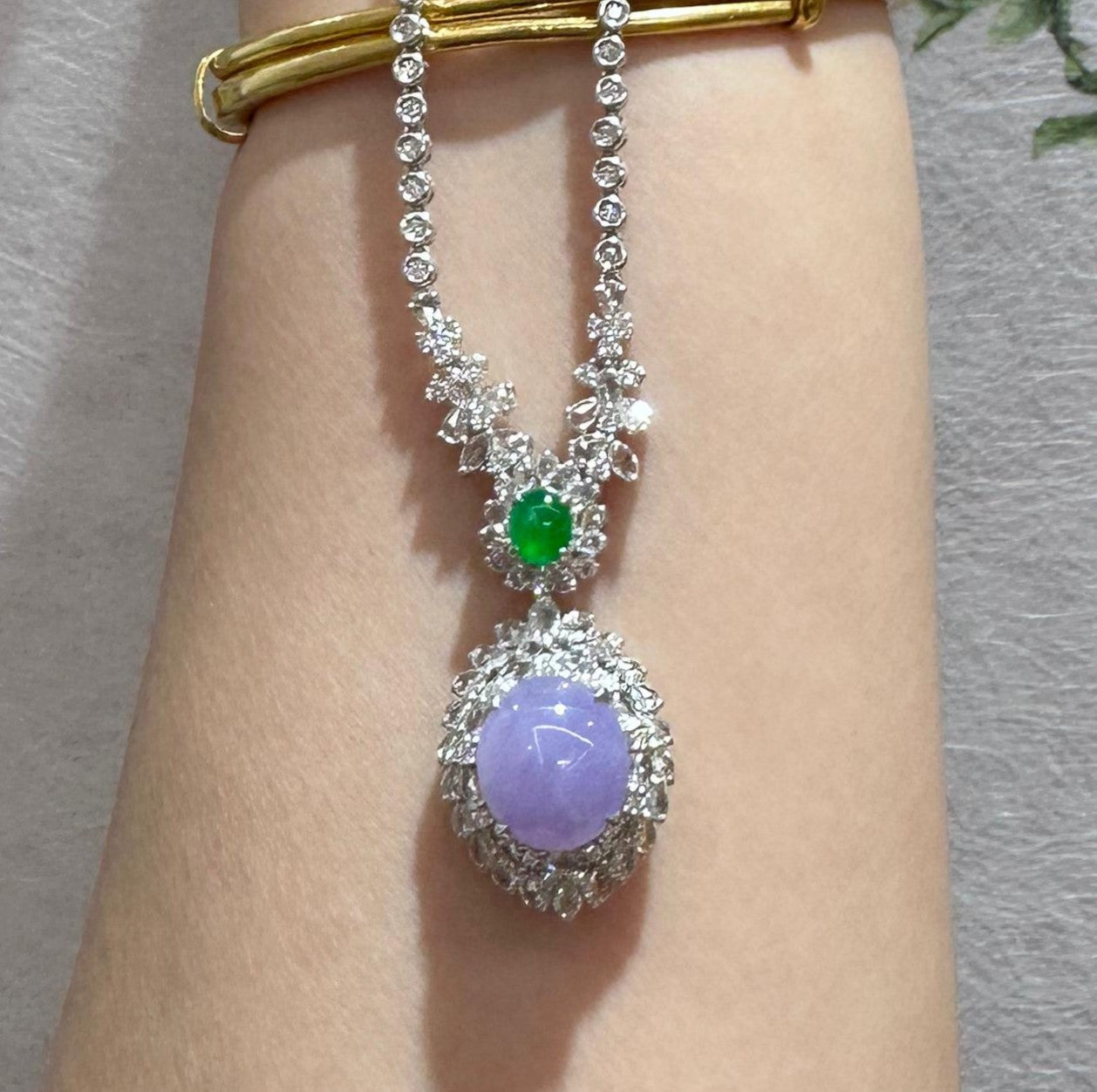 圖片拍攝無濾鏡,翡翠是天然礦物,略帶冰絲,棉,色根,紋,礦點等,純屬正常現象,非重大瑕疵不退不換。
