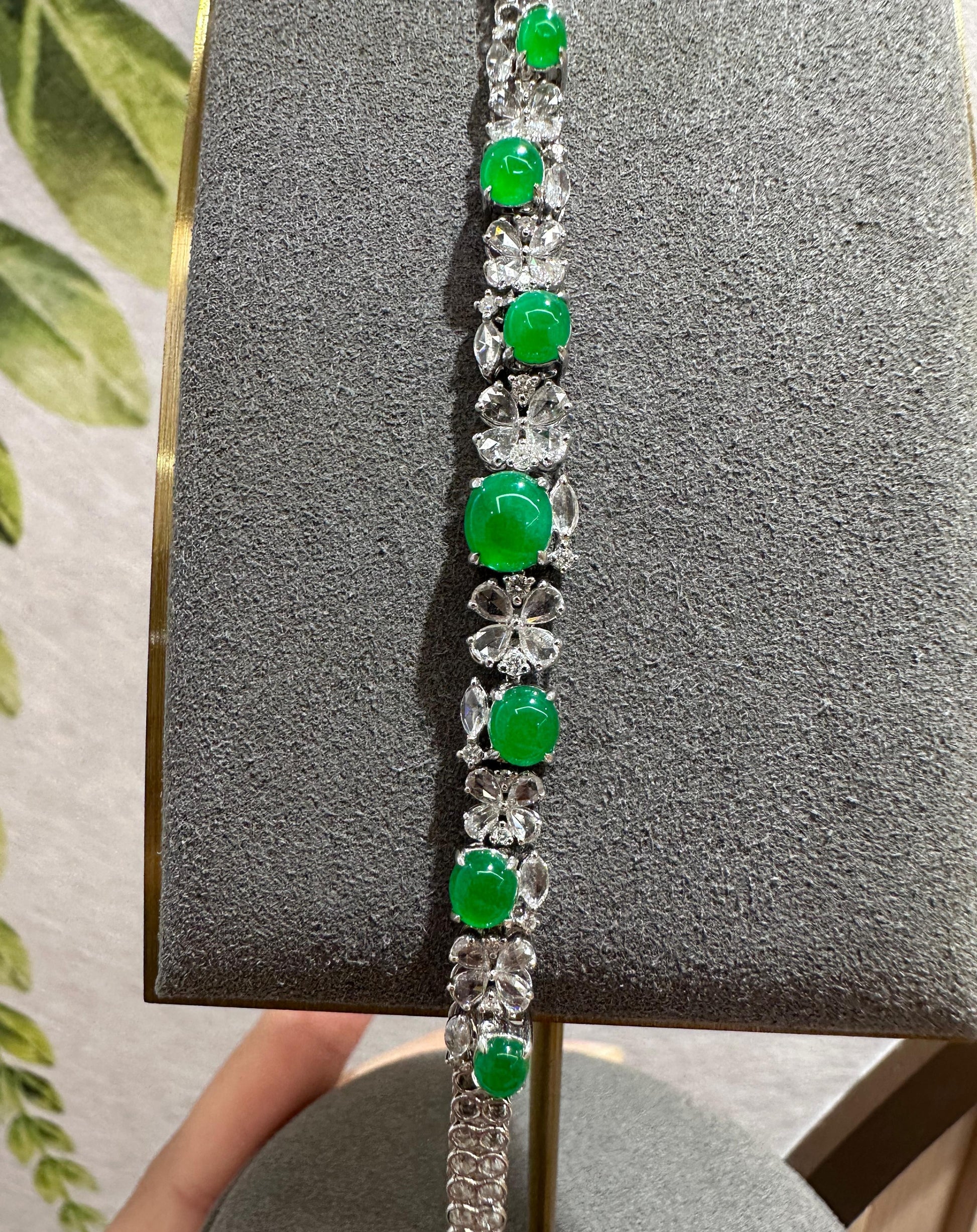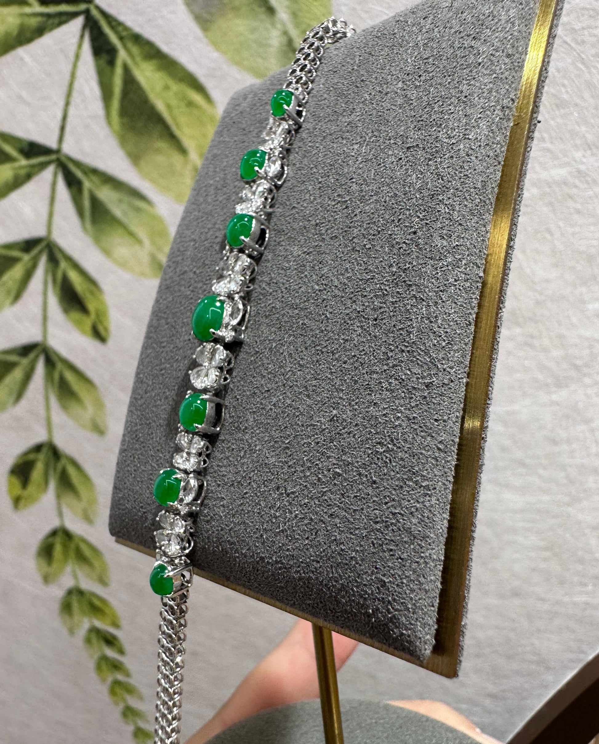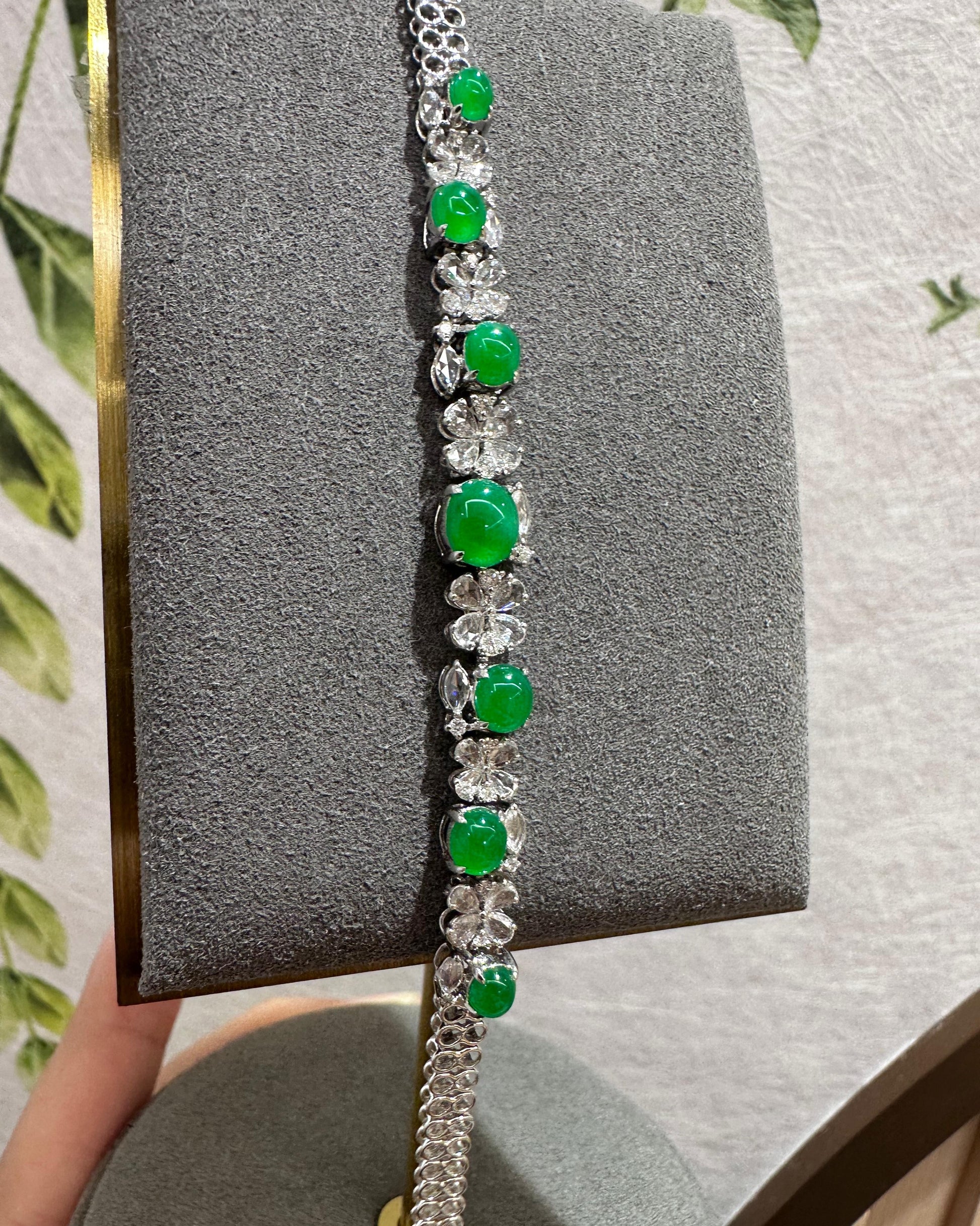 陽綠蛋面,色澤鮮豔濃郁,是戴不膩,不過時的款式,種色兼備,能夠襯托出膚色,
