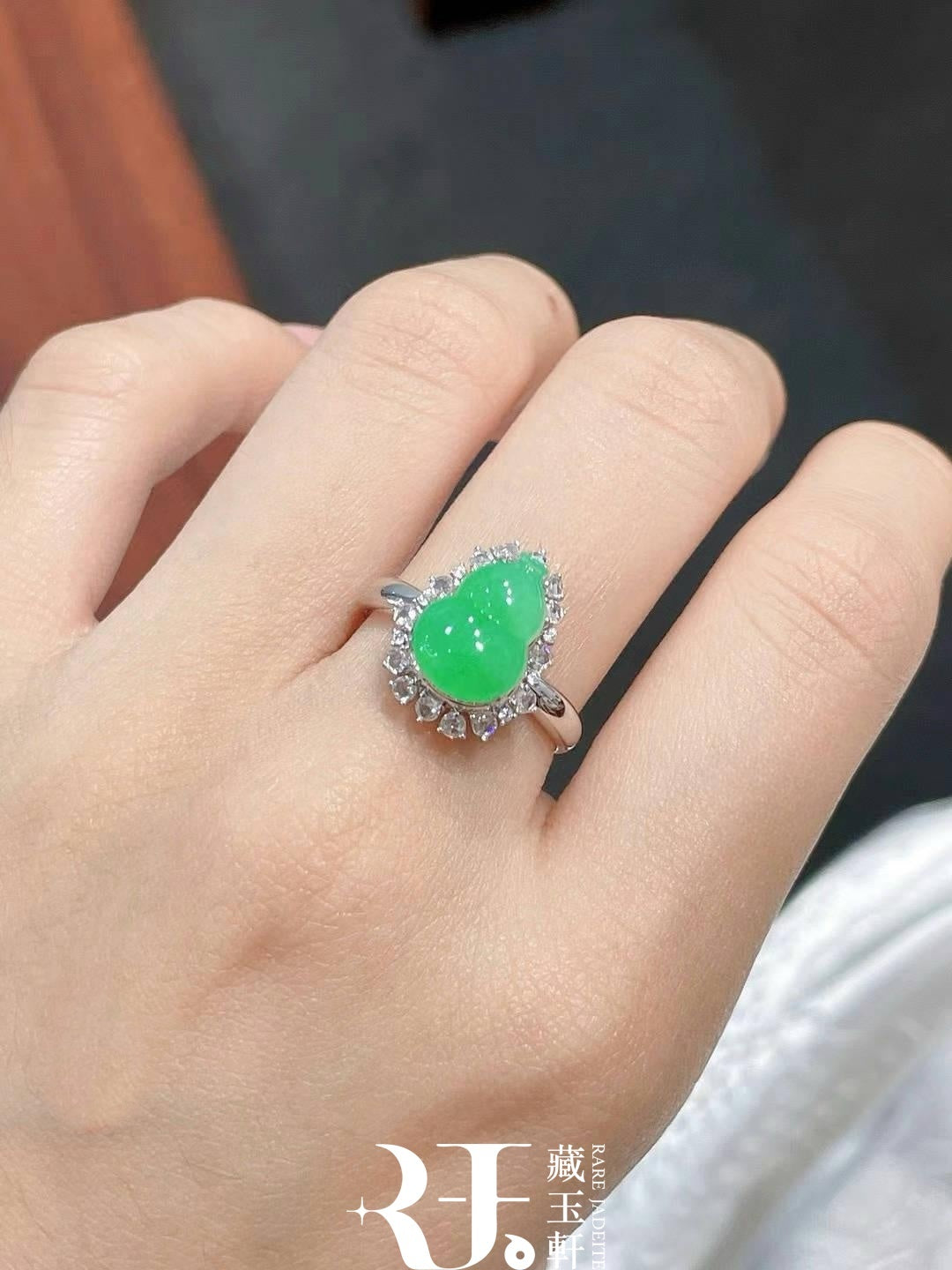冰種果陽綠,翠綠欲滴,色澤鮮豔濃郁。