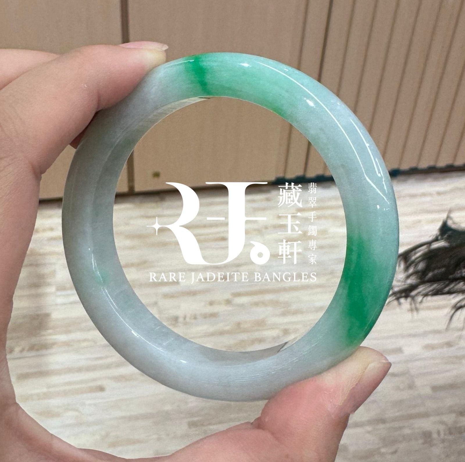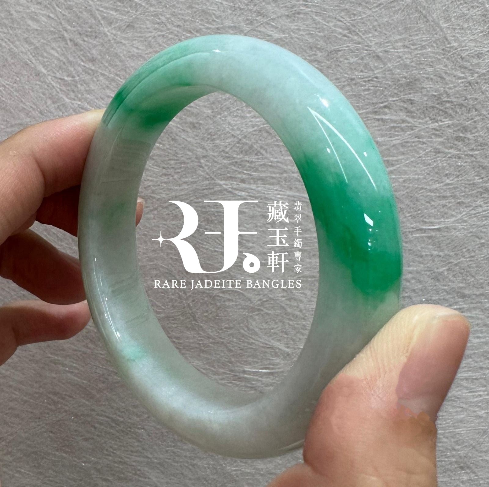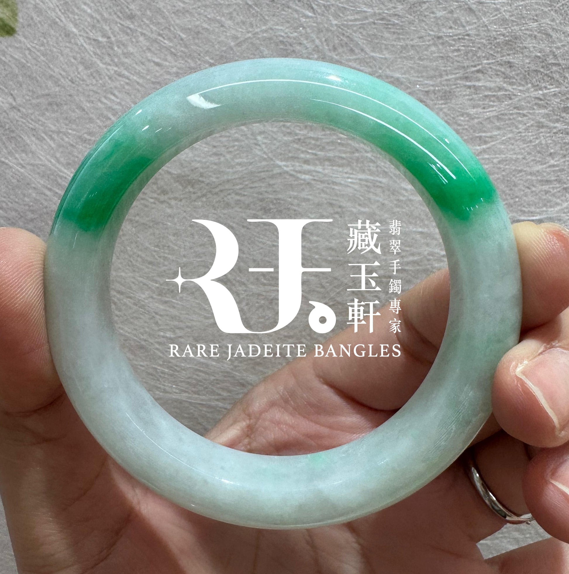 白底青正圈手鐲,飄陽綠花,底子乾淨清爽,色澤青翠清新,漂亮讓人怦然心動!