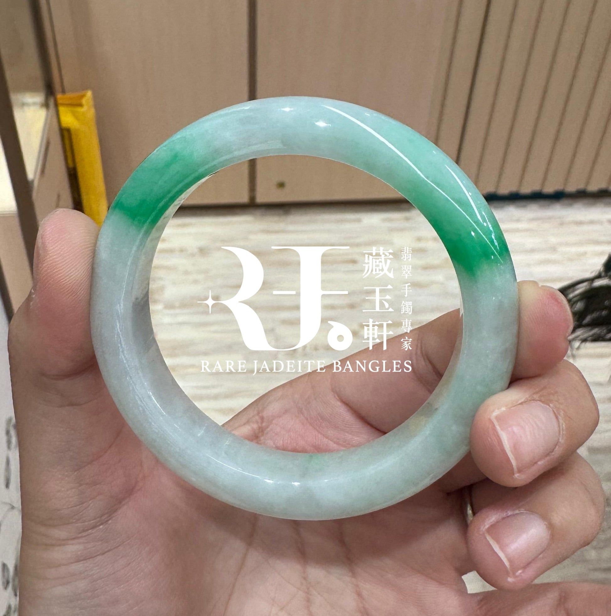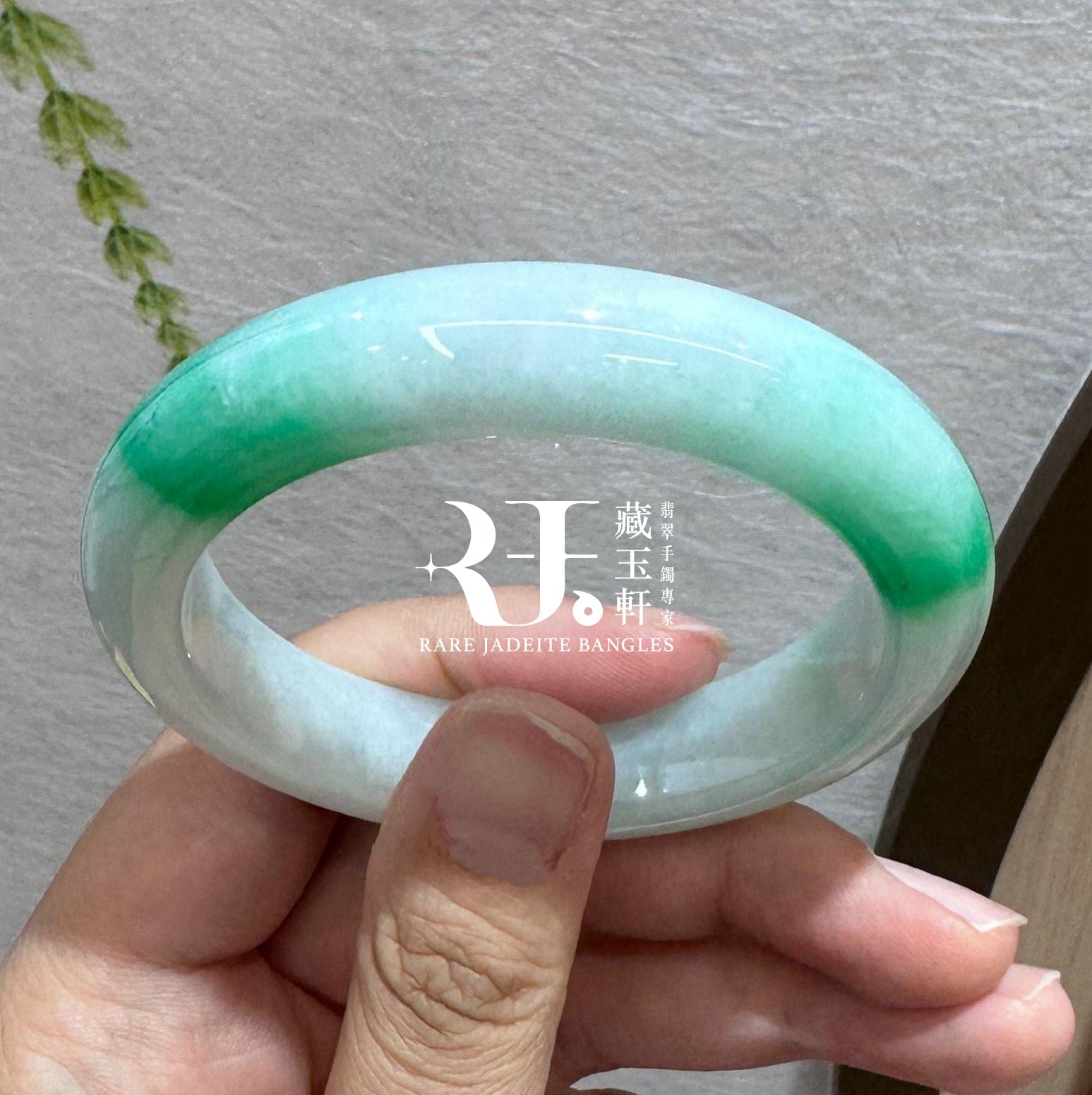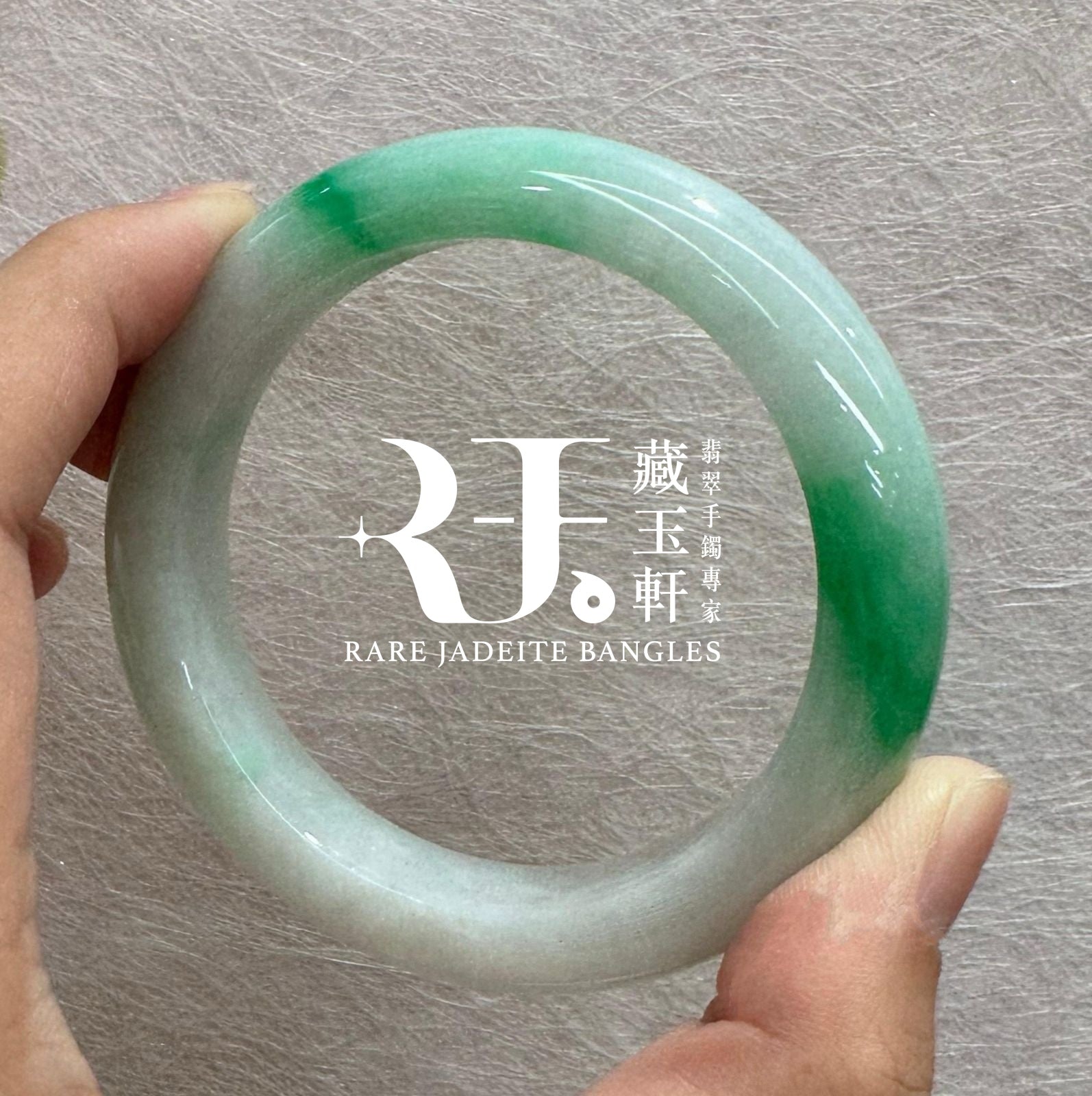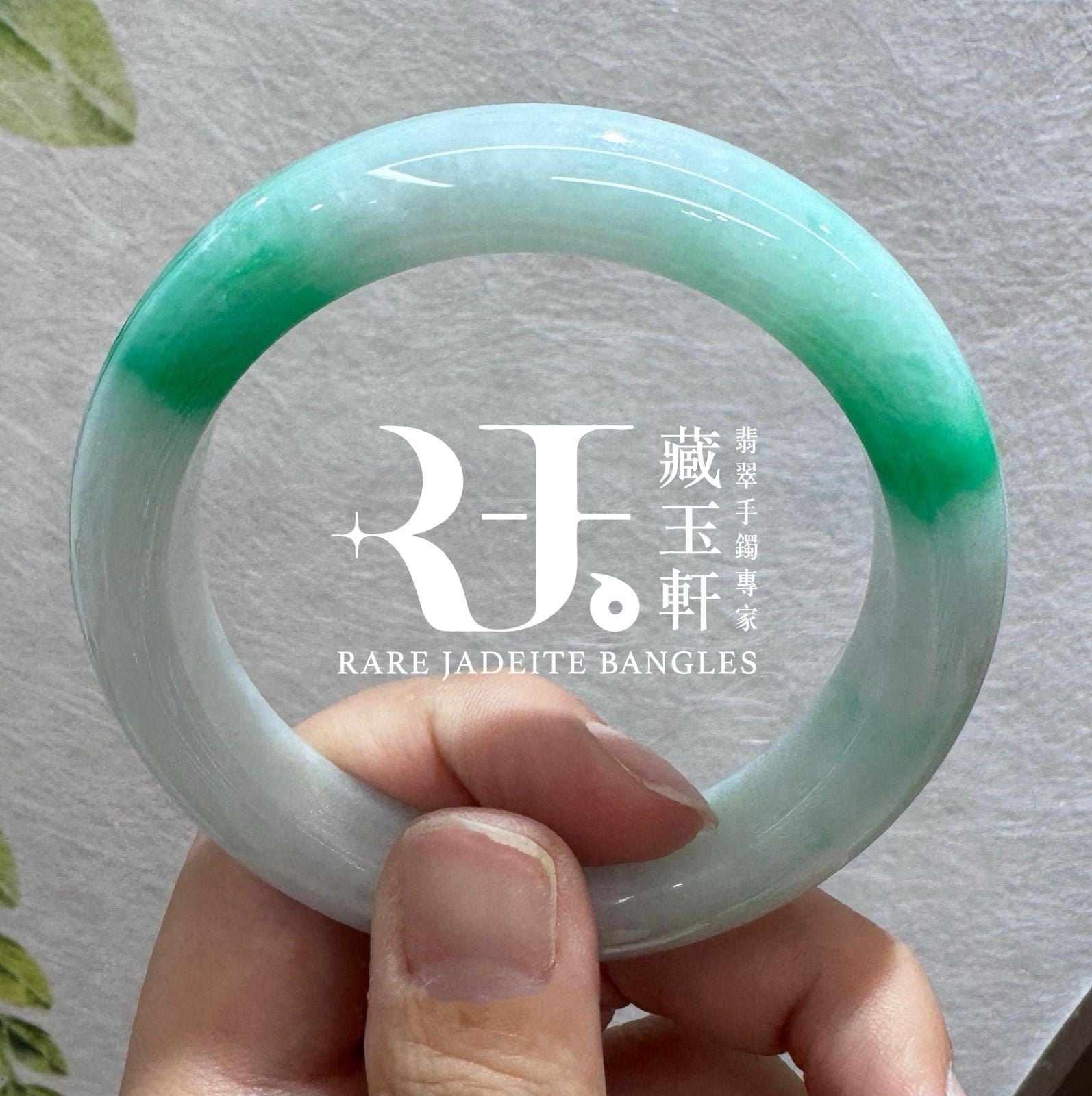 白底青正圈手鐲,飄陽綠花,底子乾淨清爽,色澤青翠清新,漂亮讓人怦然心動!