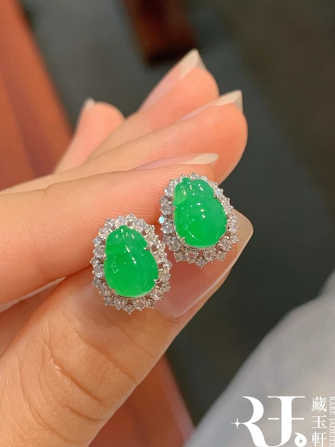 玉質種老細膩起螢起膠,裸石青翠明豔,玉質圓潤飽滿。