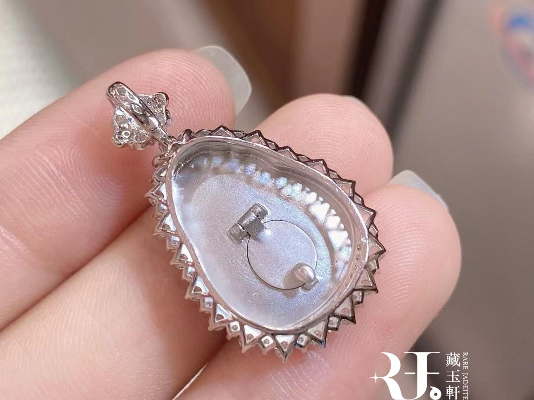 搭配18K金鑽橘黃蛋面點綴鑲嵌,背後可開蓋,主石品質可看得到,配戴活潑不老氣,佩戴起來起來沁人心扉,美豔動人。