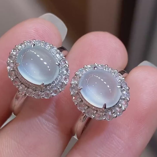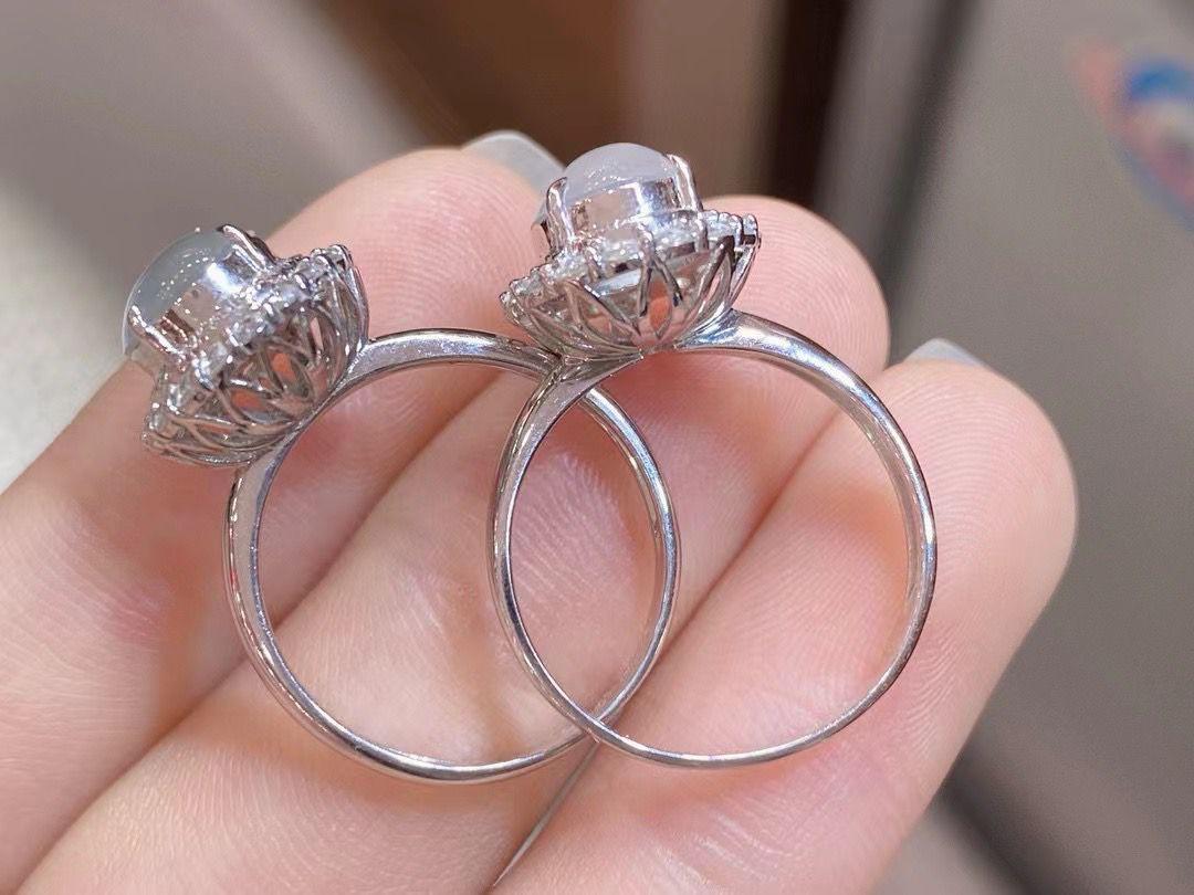 18K真金真鑽鑲嵌,雕花封底,四抓戒托,好似芙蓉露水,第一眼就給人月色朦朧之美,上手顯得柔美優雅,典雅高貴。