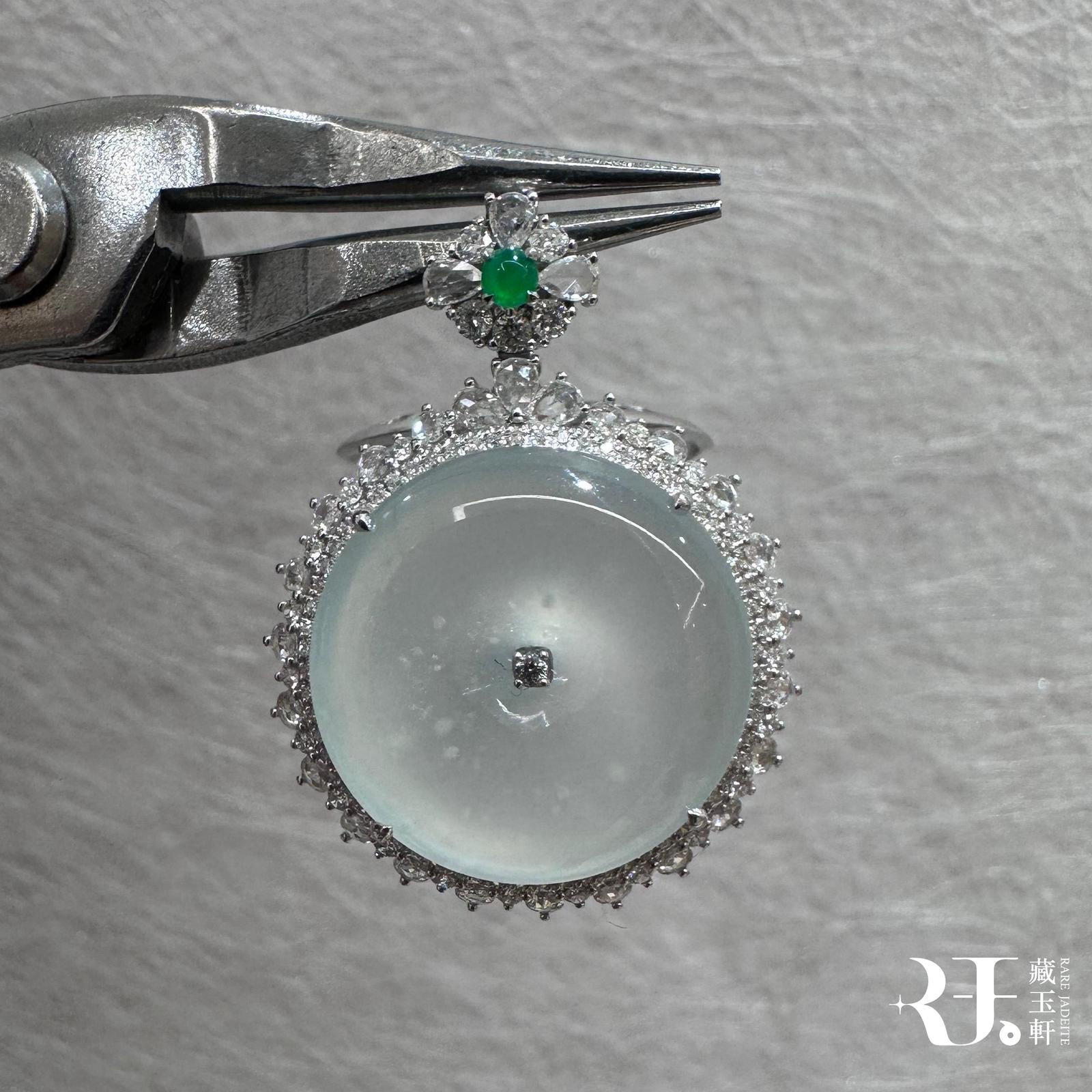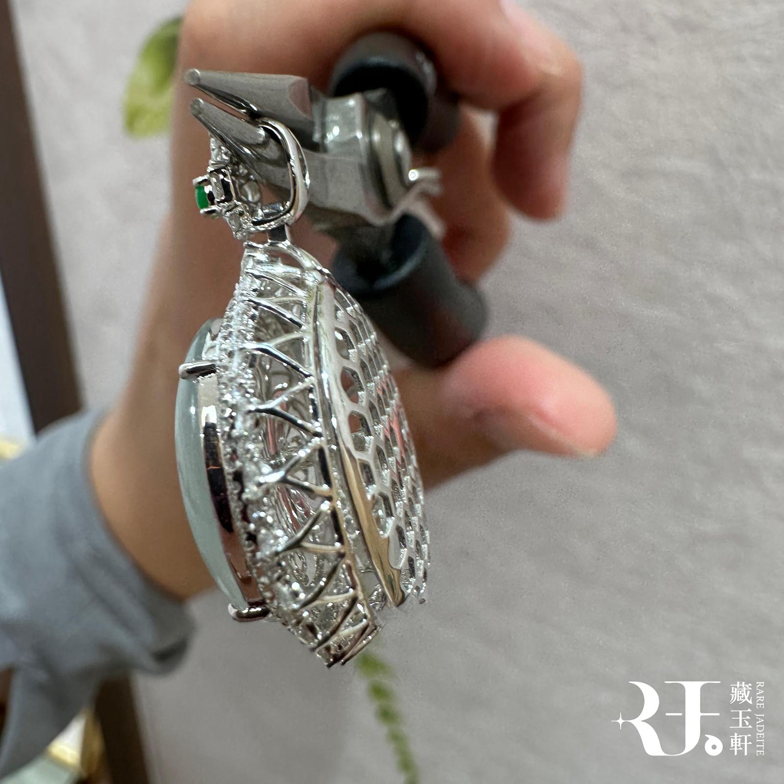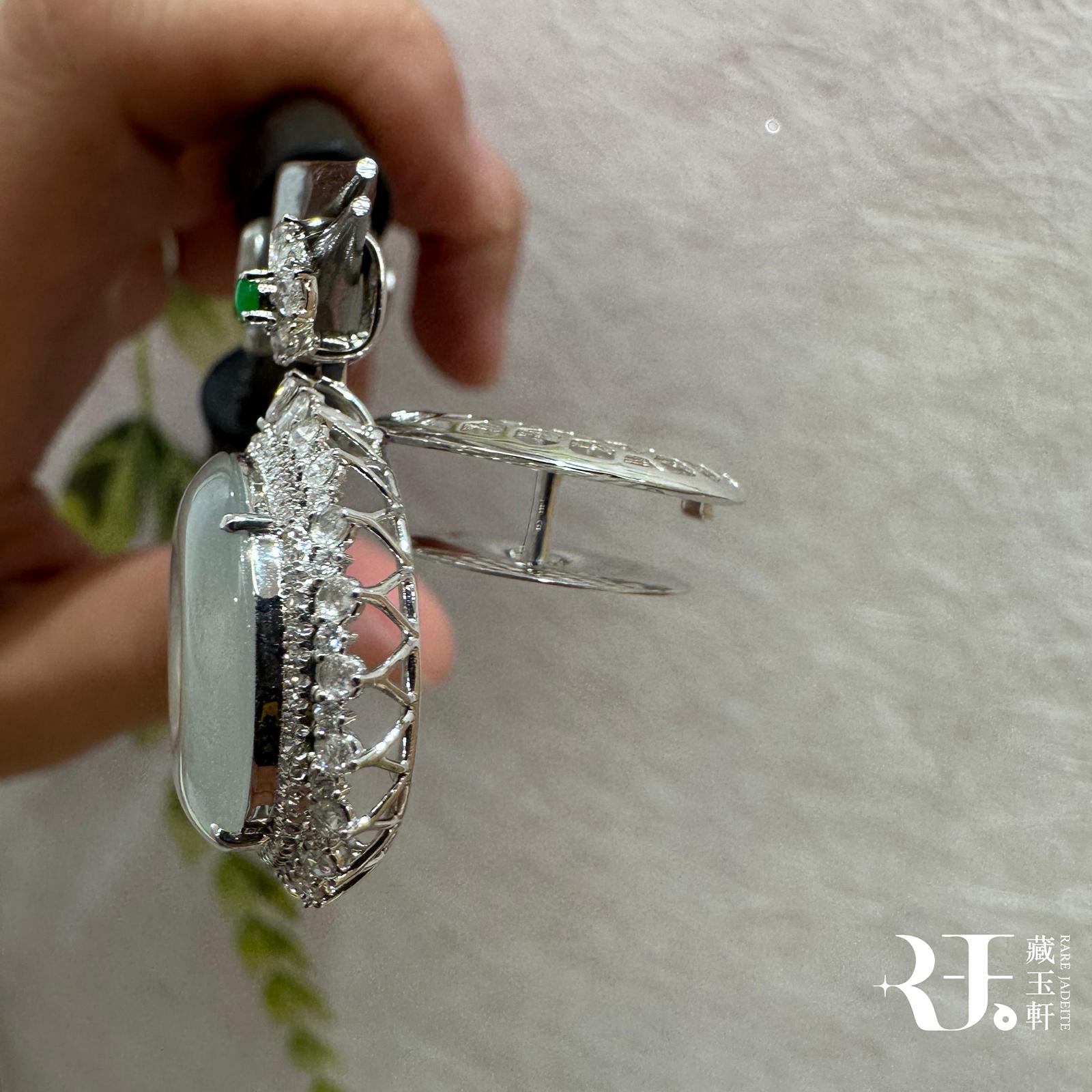 翡翠玉質通透無暇水潤,搭配18K金及鑽石圍鑲,上身大氣優雅。