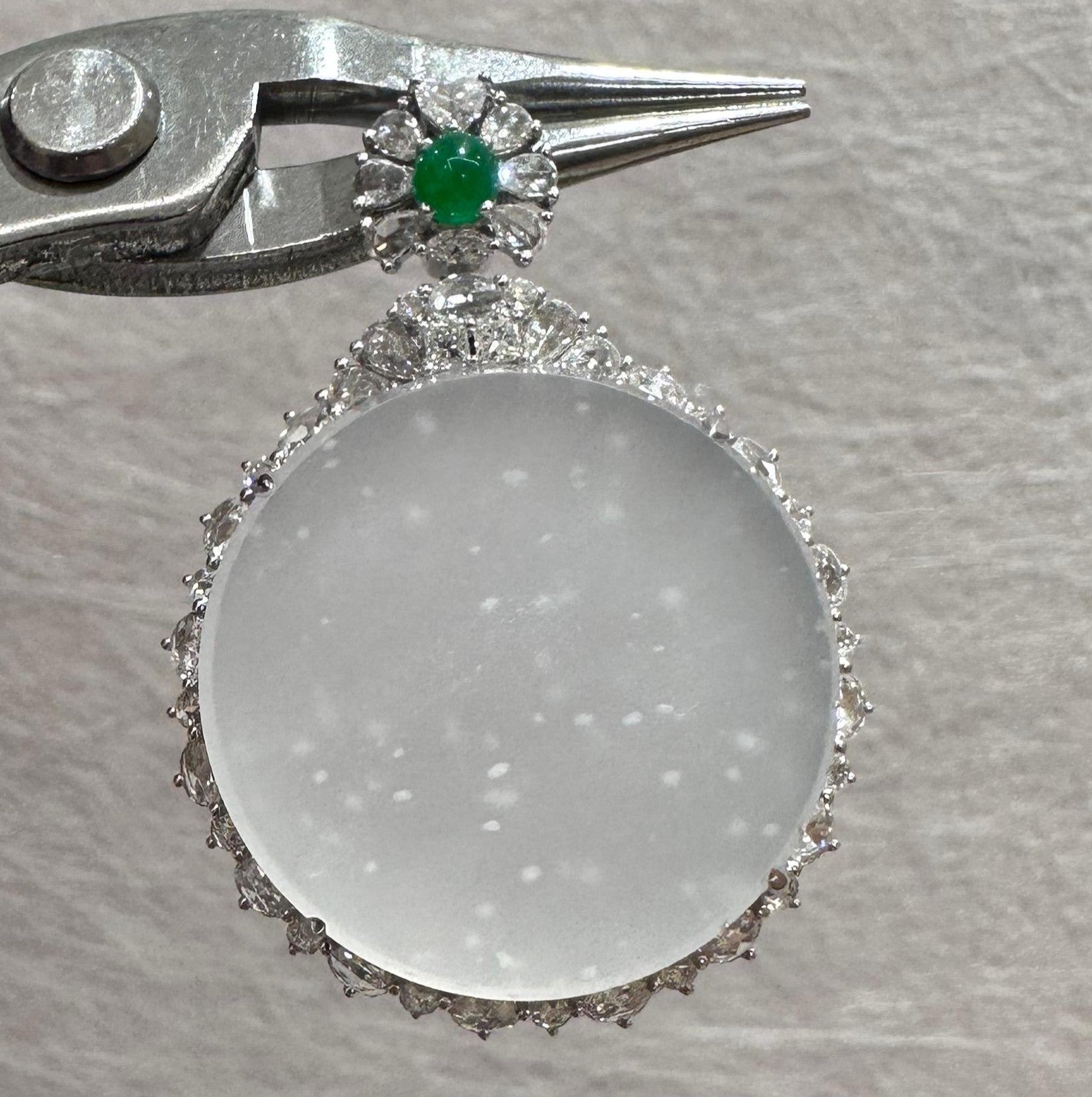 木那料雪花棉無事牌翡翠,18k真金真鑽。