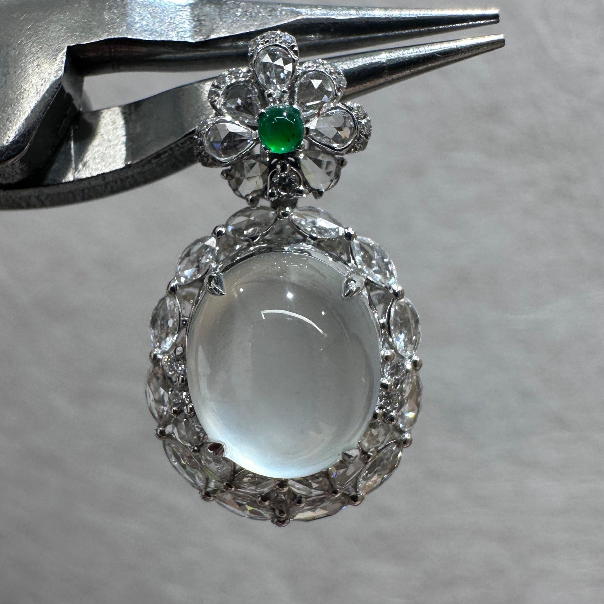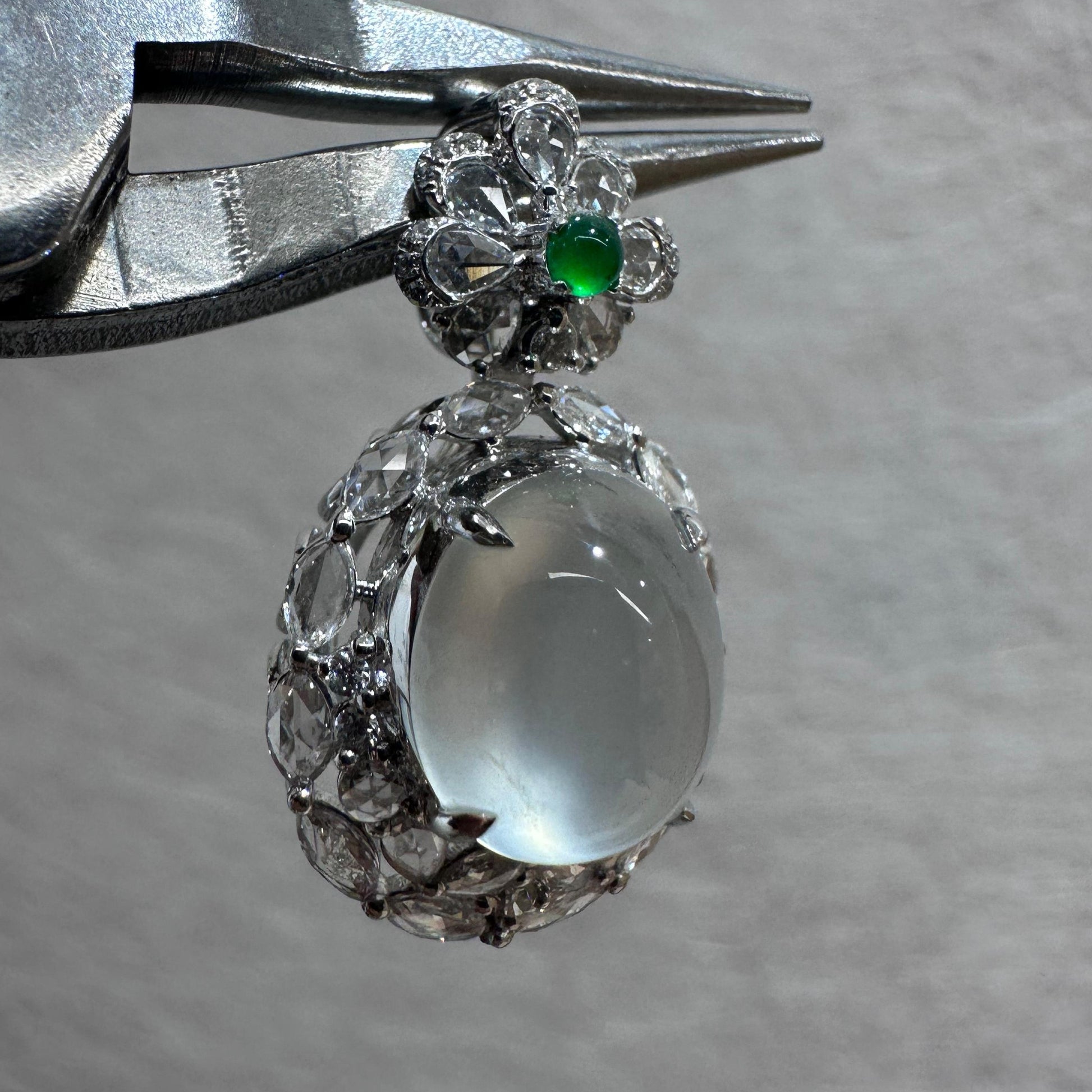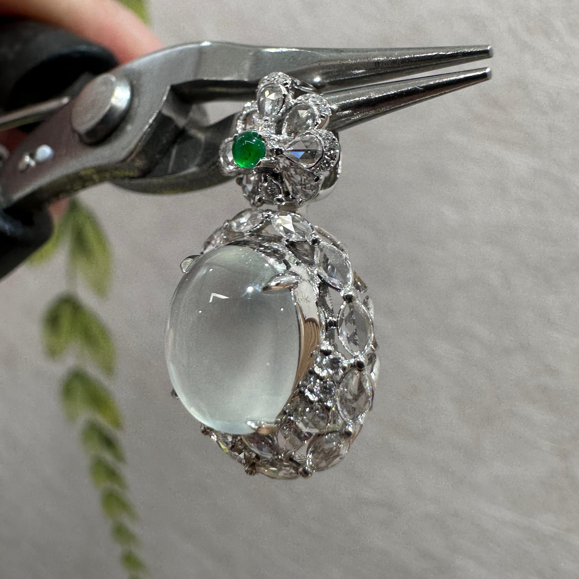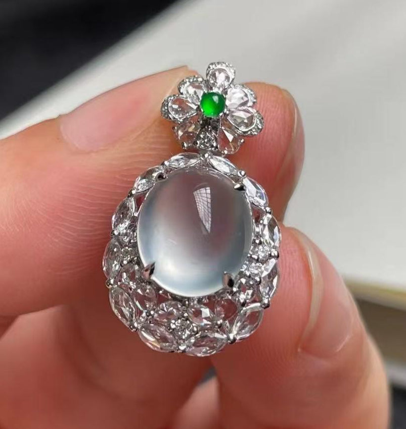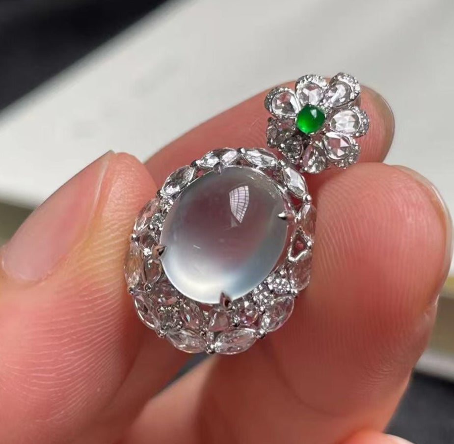 冰冰透透的鴿子蛋配小綠蛋吊頭點綴,珠寶感滿滿~真是人見人愛呀!