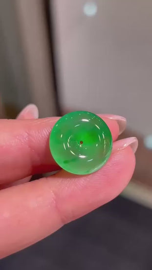 冰種陽綠晶瑩剔透起瑩,光感十足。