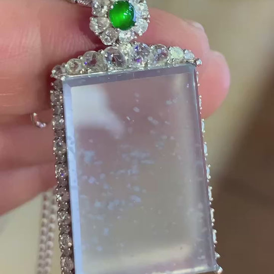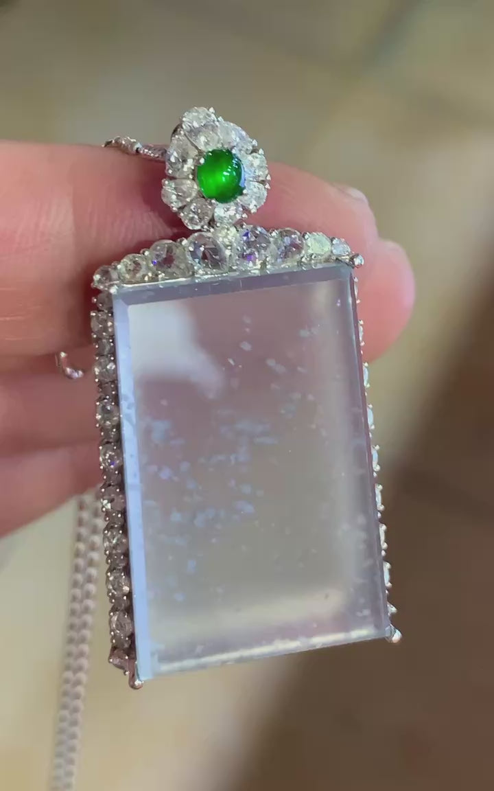玻璃種晴水藍光,老坑種好,晶瑩剔透,木那雪花棉,冰透無事牌。